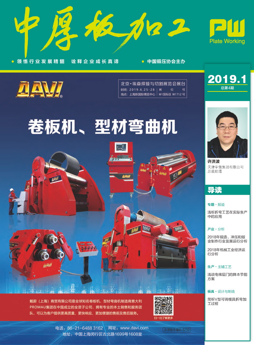 《中厚板加工》2019年第1期《中厚板加工》(原名為厚板與鋼構)雜志是中國鍛壓協會主辦的面向厚度大于(或等于)6mm的金屬中板、中厚板、厚板、特厚板材加工,厚管加工,鋼結構成形行業(yè)的綜合性高端雜志。