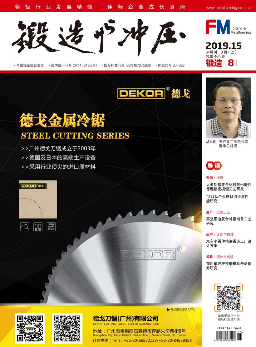 FM《鍛造與沖壓》由中國鍛壓協(xié)會(huì)主辦,是一本以市場(chǎng)需求為導(dǎo)向,集信息、技術(shù)、產(chǎn)品、市場(chǎng)與管理為一體的綜合性高端雜志。月發(fā)行量2.5萬冊(cè),采取B2B發(fā)行模式,具有鍛壓行業(yè)針對(duì)性最強(qiáng)、覆蓋有效率最高的讀者群體,是中國鍛壓行業(yè)的領(lǐng)銜雜志媒體,受到國內(nèi)外廣泛的認(rèn)可。