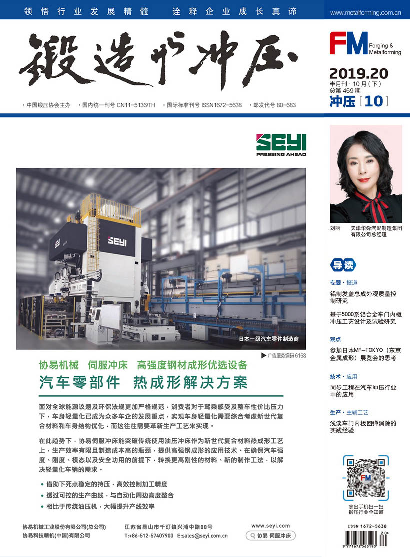 FM《鍛造與沖壓》讀者對象主要涉及:設(shè)備使用者,在企業(yè)中對設(shè)備具有方案制定、選型評估、決策、推薦等重大影響的群體。覆蓋行業(yè):汽車、電子電器、家電、航空、摩托車、基礎(chǔ)件、國防、船舶、鐵道、農(nóng)機、工程機械、石化機械、通用機械、日用品等。
