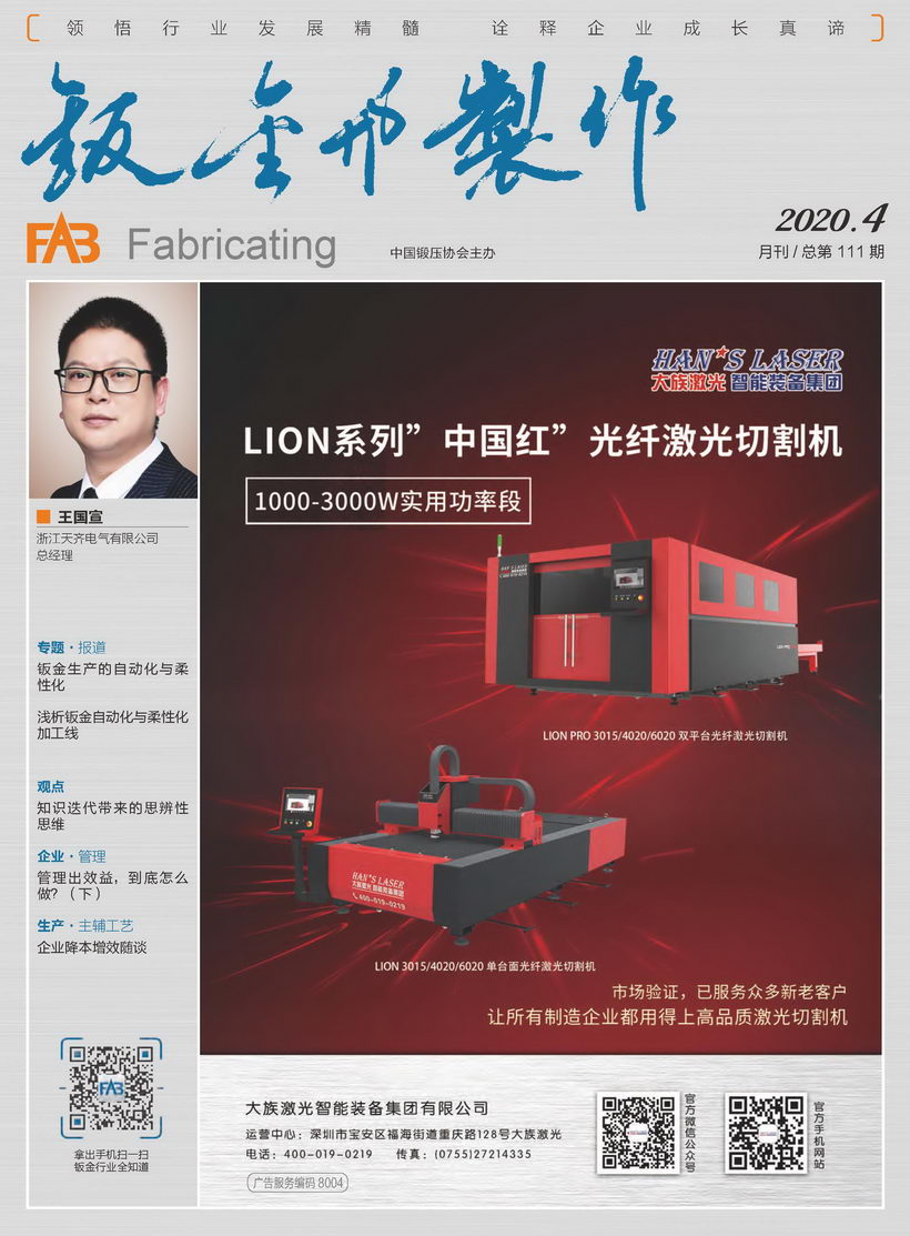 《鈑金與制作》雜志是中國鍛壓協(xié)會主辦的目前國內(nèi)惟一一本面向鈑金制作、管型線材加工行業(yè)的綜合性高端雜志。憑借中國鍛壓協(xié)會多年服務(wù)鈑金和管型線材行業(yè)的優(yōu)勢,努力搭建供應(yīng)商與用戶企業(yè)間的信息平臺,做好政府、高校、科研院所及企業(yè)間溝通的橋梁。