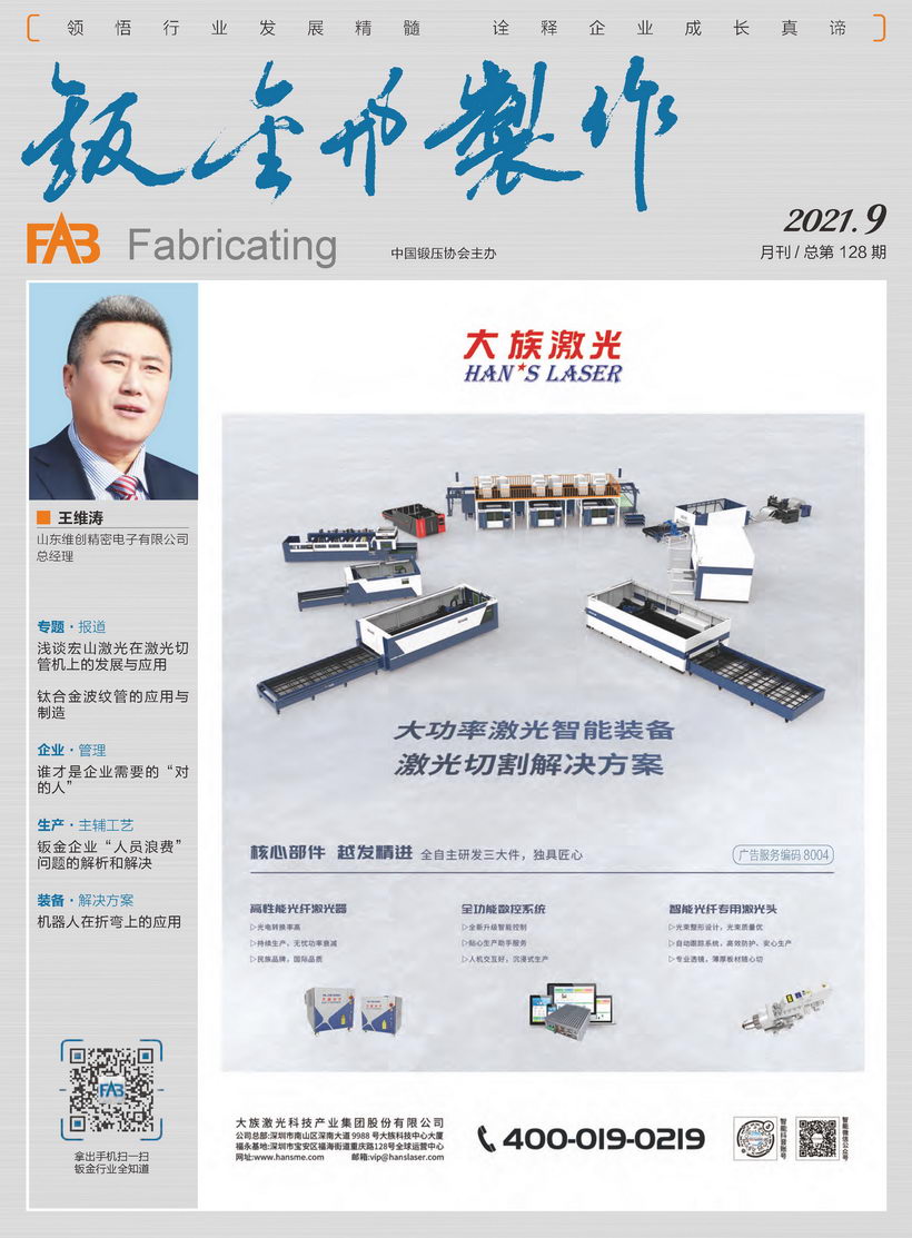 《鈑金與制作》雜志是中國(guó)鍛壓協(xié)會(huì)主辦的目前國(guó)內(nèi)惟一一本面向鈑金制作、管型線材加工行業(yè)的綜合性高端雜志。憑借中國(guó)鍛壓協(xié)會(huì)多年服務(wù)鈑金和管型線材行業(yè)的優(yōu)勢(shì),努力搭建供應(yīng)商與用戶企業(yè)間的信息平臺(tái),做好政府、高校、科研院所及企業(yè)間溝通的橋梁。