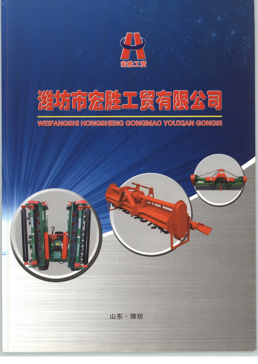 濰坊市宏勝工貿(mào)有限公司座落在風景秀麗的浮煙山腳下。這里是馳名中外的國際風箏都放飛場,現(xiàn)已建設發(fā)展成為國內(nèi)外友人矚目的旅游勝地,文化交流、貿(mào)易往來、交通便利,環(huán)境優(yōu)美,地理位置非常優(yōu)越。公司堅持“以質(zhì)量求生存,以創(chuàng)新求發(fā)展,以誠信創(chuàng)業(yè)績”的發(fā)展思路,努力打造“鳶山”、“濰一”系列化產(chǎn)品品牌,現(xiàn)已發(fā)展成為我市規(guī)模較大的農(nóng)機研發(fā)生產(chǎn)基地;05年榮獲機械工業(yè)協(xié)會推薦產(chǎn)品,國家補貼機具。主導產(chǎn)品1JH-90-440型多品種規(guī)格的秸稈粉碎還回機,適應各種壟作秸稈還田,大功率拖拉機配套的雙傳,液壓折疊還田機,技術領先國內(nèi)首例,是國產(chǎn)化技術改造替代進口的最佳選擇。1JH-90-360型土豆、紅薯、西瓜等仿壟型秧蔓粉碎機,收獲時明薯率高.11SLN-150-450型水田起裝平地機,出口型系列割草機,各種型號牧草收獲機等,產(chǎn)品暢銷國內(nèi)十幾個省市。由口美國、泰國,深受專家好評和用戶責味。幾年來研發(fā)街產(chǎn)品獲國狀發(fā)明、實周新型十一項專利證書,為令居企業(yè)的發(fā)展進入活力,其定了基礎,同時為農(nóng)機化發(fā)展低由了卓越的貢獻,我們將永遠以一流用產(chǎn)品質(zhì)量、一流的服務水平,回報社會,為推動農(nóng)業(yè)機械化發(fā)展,引導農(nóng)機具折漸濾為已任,為您的主機增先添彩,讓用戶滿意是我們不懈的追求!