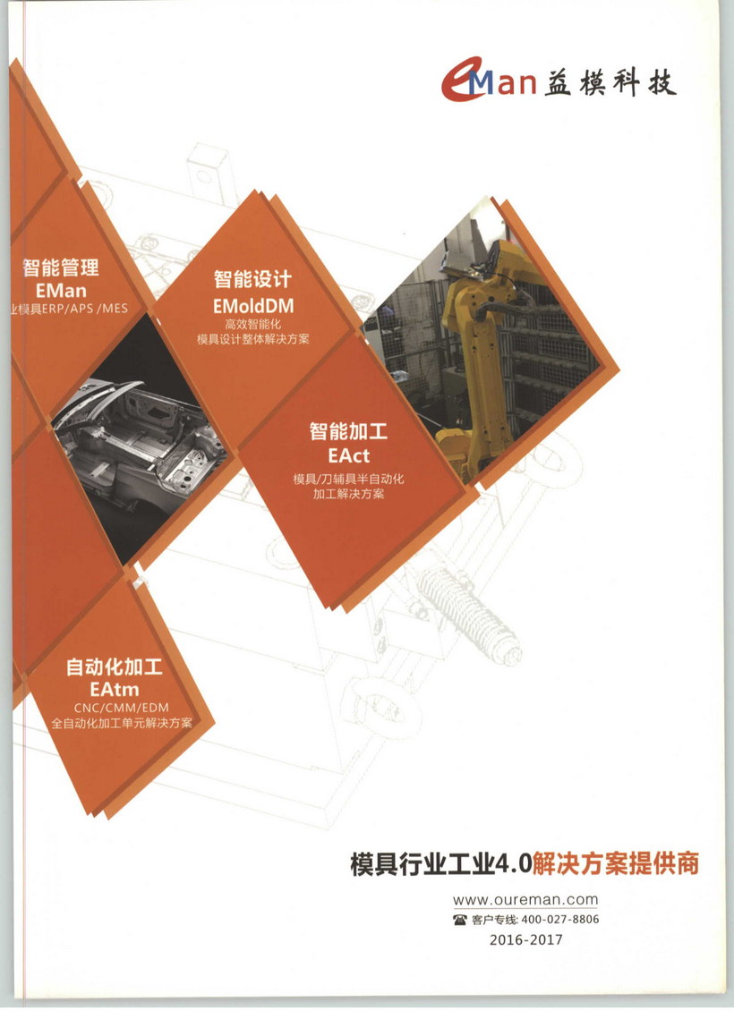 武漢益模科技股份有限公司是模具行業(yè)工業(yè)4.0解決方案提供商,為模具行業(yè)提供專業(yè)的智能設(shè)計(jì)、信息化管理、數(shù)字化工廠以及車間自動(dòng)化等一系列實(shí)現(xiàn)工業(yè)4.0的解決方案,擁有麥格納、德爾福、海拉、薩克斯、一汽、上汽、北汽福田、格力、美的、康佳、比亞迪等數(shù)百家優(yōu)質(zhì)客戶,是西門子工業(yè)軟件全球首家模具ERP/MES集成合作伙伴,連續(xù)三屆獲得中國(guó)模具工業(yè)協(xié)會(huì)頒發(fā)的“優(yōu)秀模具制造軟件供應(yīng)商”獎(jiǎng)項(xiàng)。益??萍际侵袊?guó)模具工業(yè)協(xié)會(huì)經(jīng)營(yíng)管理委員會(huì)副主任單位、湖北省模具行業(yè)協(xié)會(huì)副會(huì)長(zhǎng)兼副秘書長(zhǎng)單位,湖北省軟件行業(yè)協(xié)會(huì)理事單位,是東湖高新區(qū)重點(diǎn)支持的“3551光谷人才計(jì)劃”企業(yè)。益??萍际菄?guó)家級(jí)高新技術(shù)企業(yè),獲批國(guó)家“863計(jì)劃”和“國(guó)家創(chuàng)新基金”項(xiàng)目立項(xiàng)。曾榮獲“中國(guó)機(jī)械工業(yè)科學(xué)技術(shù)獎(jiǎng)一等獎(jiǎng)”、“湖北省科技進(jìn)步一等獎(jiǎng)”、“教育部科技進(jìn)步二等獎(jiǎng)”。公司目前主要產(chǎn)品包括EMan專業(yè)模具ERP/APS/MES; EMoldDM高效智能化模具設(shè)計(jì)整體解決方案;EAct模具輔具半自動(dòng)化加工解決方案;EAtm CNC/CMM/EDM全自動(dòng)化加工單元解決方案等產(chǎn)品及其技術(shù)服務(wù)。