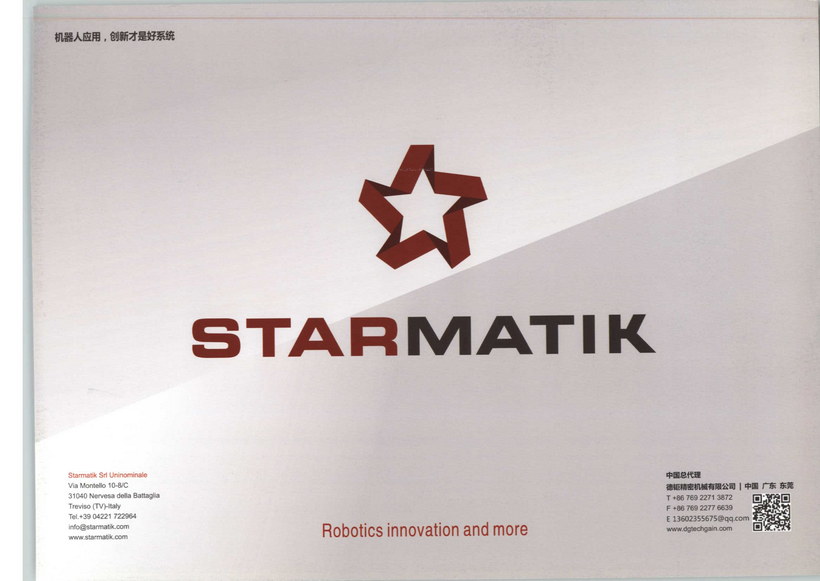 意大利Starmatik公司是公認(rèn)的歐洲鈑金行業(yè)機(jī)器人自動(dòng)化方面的領(lǐng)導(dǎo)性企業(yè)之一。業(yè)務(wù)范圍涵蓋機(jī)器人折彎、焊接、打磨、激光切割上下料、分揀、物料處理和特殊系統(tǒng),尤其是機(jī)器人折彎領(lǐng)域,獨(dú)占?xì)W洲70%的市場(chǎng)份額。公司自1996年成立以來(lái),基于客戶(hù)特定需求,Starmatik公司向全球客戶(hù)提供了超過(guò)600個(gè)高品質(zhì)定制化完整解決方案,廣泛用于鈑金加工的各種工藝。基于公司員工所掌握的技術(shù)Know-how ,Starmatik公司開(kāi)發(fā)多種多樣的技術(shù)方案并完美實(shí)施,充分滿(mǎn)足客戶(hù)的特定需求?;谏a(chǎn)過(guò)程的深入分析,精確定位關(guān)鍵問(wèn)題點(diǎn),通過(guò)創(chuàng)新性的設(shè)計(jì)方案和精密制造與安裝調(diào)試,Starmatik創(chuàng)造出與眾不同的行業(yè)地位。感謝所有專(zhuān)業(yè)技術(shù)人員,讓Starmatik開(kāi)發(fā)的項(xiàng)目多種多樣,能實(shí)現(xiàn)所有自動(dòng)化特定需求。對(duì)項(xiàng)目的跟蹤,與客戶(hù)進(jìn)行流程分析互動(dòng),解決識(shí)別精度的難題,并精確的調(diào)整到最佳狀態(tài)是Starmatik 獨(dú)有的特色。