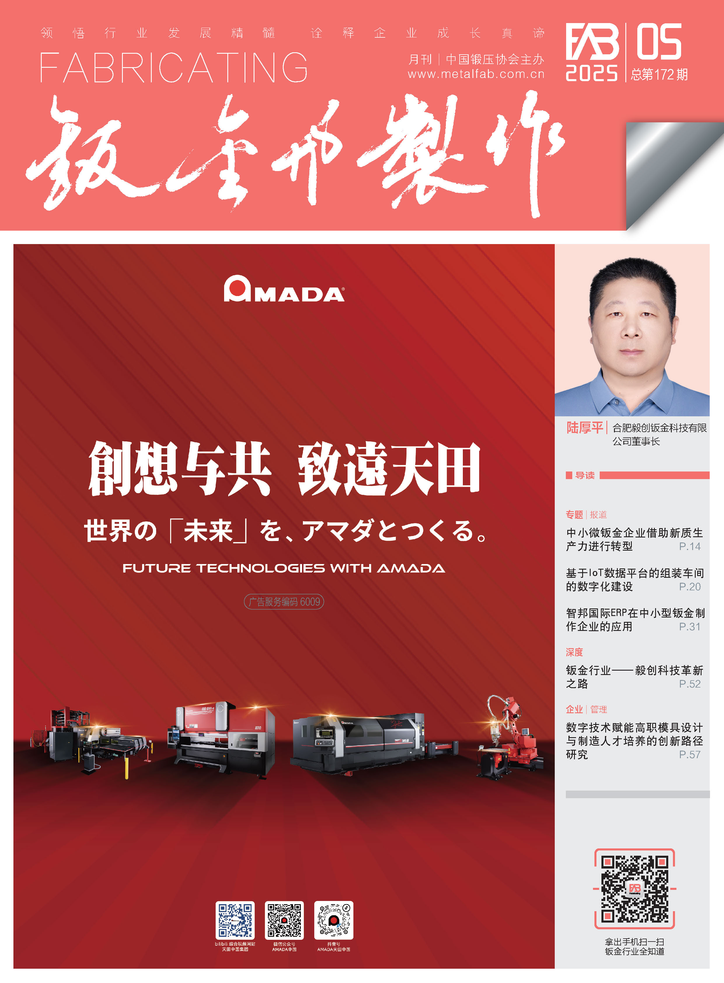 《鈑金與制作》雜志是中國鍛壓協(xié)會主辦的目前國內(nèi)惟一一本面向鈑金制作、管型線材加工行業(yè)的綜合性高端雜志。憑借中國鍛壓協(xié)會多年服務(wù)鈑金和管型線材行業(yè)的優(yōu)勢,努力搭建供應(yīng)商與用戶企業(yè)間的信息平臺,做好政府、高校、科研院所及企業(yè)間溝通的橋梁。