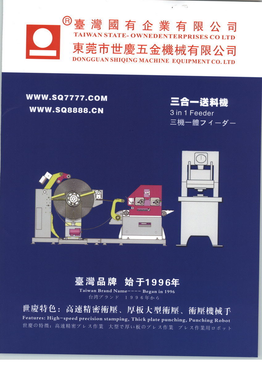 東莞市世慶五金機(jī)械有限公司總公司位于世界制作之都東莞,是臺(tái)灣老牌沖壓周邊廠家,全球知名品牌之一,也是全球產(chǎn)品種類最齊全的生產(chǎn)廠家之一。于1996年在東莞設(shè)立的大陸地區(qū)總部,參考先進(jìn)國(guó)家技術(shù),專業(yè)生產(chǎn)與銷售沖床周邊自動(dòng)化系列的機(jī)械設(shè)備以及整廠設(shè)備。