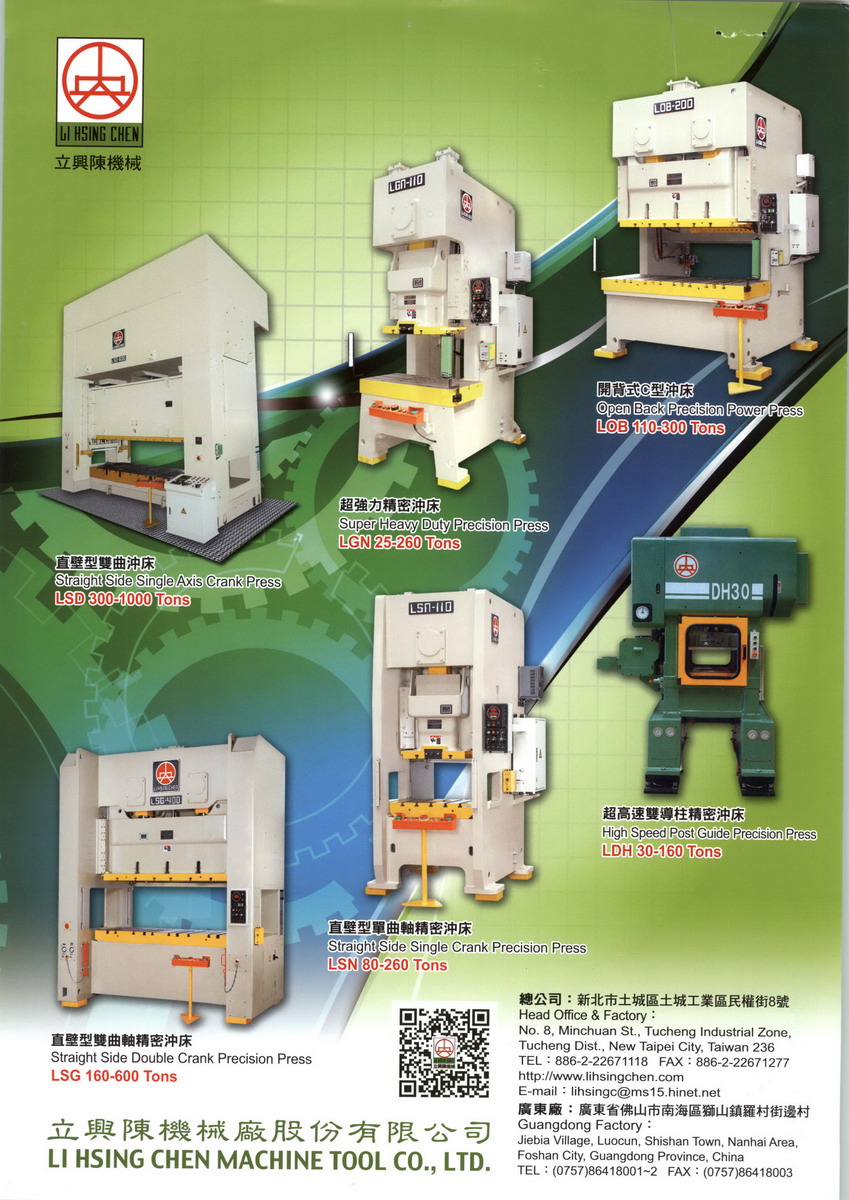 「品質(zhì)創(chuàng)新丶追求卓越」是立興陳重要的企業(yè)理念之一,以提供滿足客戶之優(yōu)良產(chǎn)品并致立於周邊自動(dòng)化的研發(fā)及配合。立興陳沖床產(chǎn)品包含直壁型雙曲沖床丶直壁型單曲沖床丶直壁型雙曲軸精密沖床丶開(kāi)背式C型沖床丶超強(qiáng)力精密沖床丶超高速雙導(dǎo)柱精密沖床丶?xì)鈮菏礁咚倬軟_床,產(chǎn)品品質(zhì)優(yōu)異,兼具高效率丶高安全的特性,是您邁向成功的最佳夥伴。