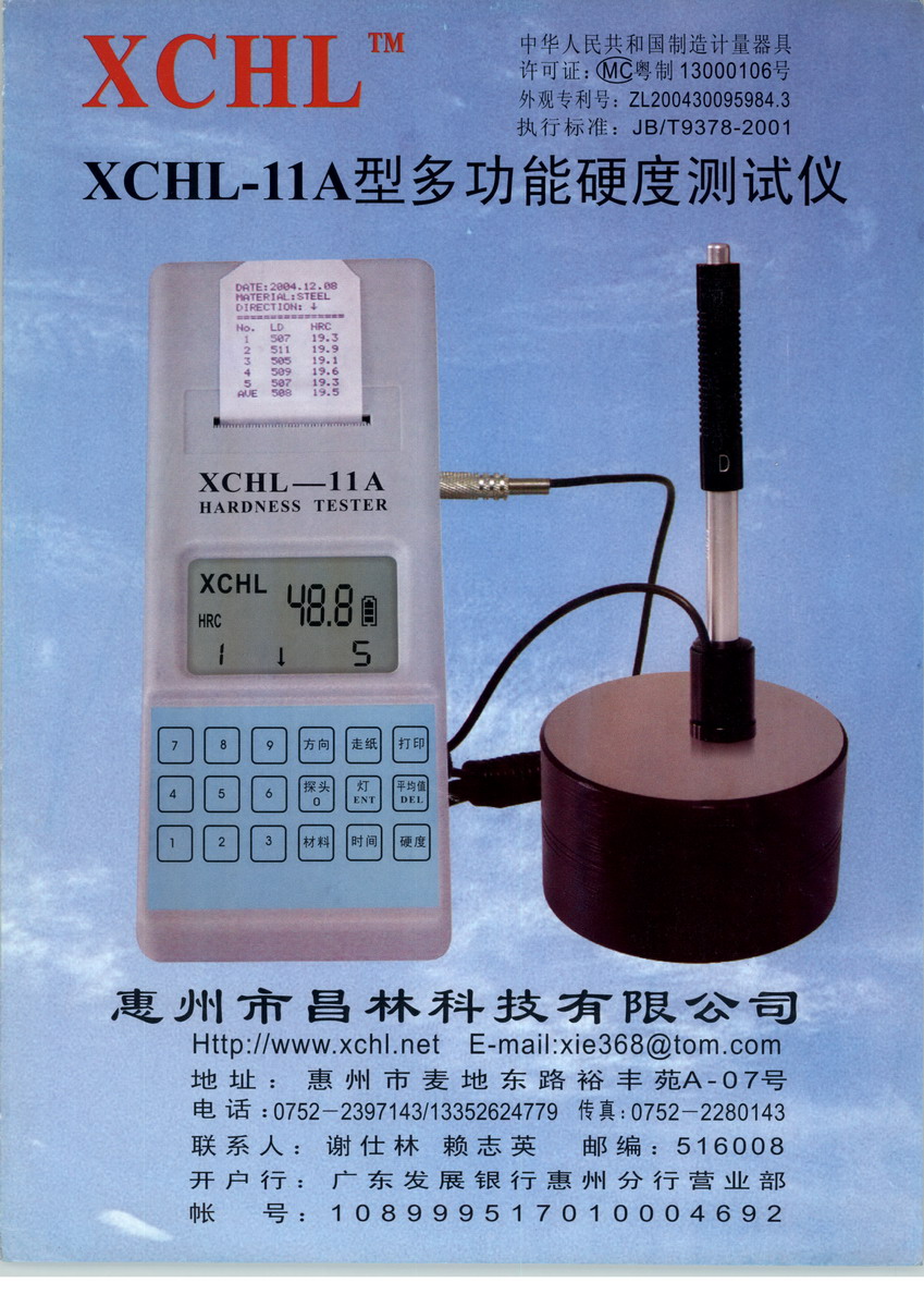 本公司專業(yè)生產(chǎn)多功能里氏硬度計(jì),有三種型號(hào)可選擇 XCHL-11A、XCHL-11B、XCHL-11C型里氏硬度計(jì)技術(shù)先進(jìn)、質(zhì)量可靠、操作簡(jiǎn)單、使用方便。是適用于模具、機(jī)械、機(jī)床、鍛造、五金、熱處理、特種鋼等行業(yè)理想的硬度測(cè)試儀器。 質(zhì)量可靠、操作簡(jiǎn)單、使用方便。是適用于模具、機(jī)械、機(jī)床、鍛造、五金、熱處理、特種鋼等行業(yè)理想的硬度測(cè)試儀器。