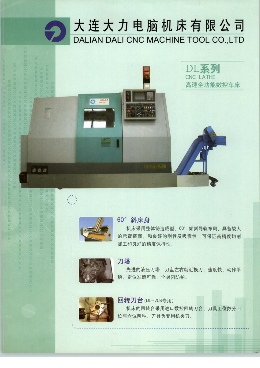 大連機(jī)床集團(tuán)中國(guó)企業(yè)的500強(qiáng)之一,中國(guó)機(jī)械工業(yè)核心競(jìng)爭(zhēng)力20強(qiáng),大型工業(yè)企業(yè)500強(qiáng),中國(guó)機(jī)床工具銷售收入連續(xù)五年第一,中國(guó)機(jī)械工業(yè)100強(qiáng),機(jī)床工業(yè)首位,中國(guó)名優(yōu)產(chǎn)品售后服務(wù)十佳企業(yè)。數(shù)字說明一切?。?作為大連機(jī)床集團(tuán)的一個(gè)分公司,大連大力電腦機(jī)床有限公司, 它與臺(tái)灣亨德集團(tuán)于1993年共同投資一千萬(wàn)美元?jiǎng)?chuàng)建的。主要產(chǎn)品數(shù)控車床都通過了ISO9001:2000質(zhì)量認(rèn)證,其技術(shù)性能達(dá)到了當(dāng)代國(guó)際先進(jìn)水平,完全可以代替同類進(jìn)口產(chǎn)品。本公司產(chǎn)品已廣泛用于機(jī)械加工中軸類和盤類零件的車削加工,并深得用戶的好評(píng),目前除在國(guó)內(nèi)市場(chǎng)銷售外還批量出口到韓國(guó),意大利等國(guó)家。 最后,我們相信,高質(zhì)量的產(chǎn)品會(huì)讓上帝用的舒心,三年的免費(fèi)的卻優(yōu)秀的售后服務(wù)能讓你用的放心!!