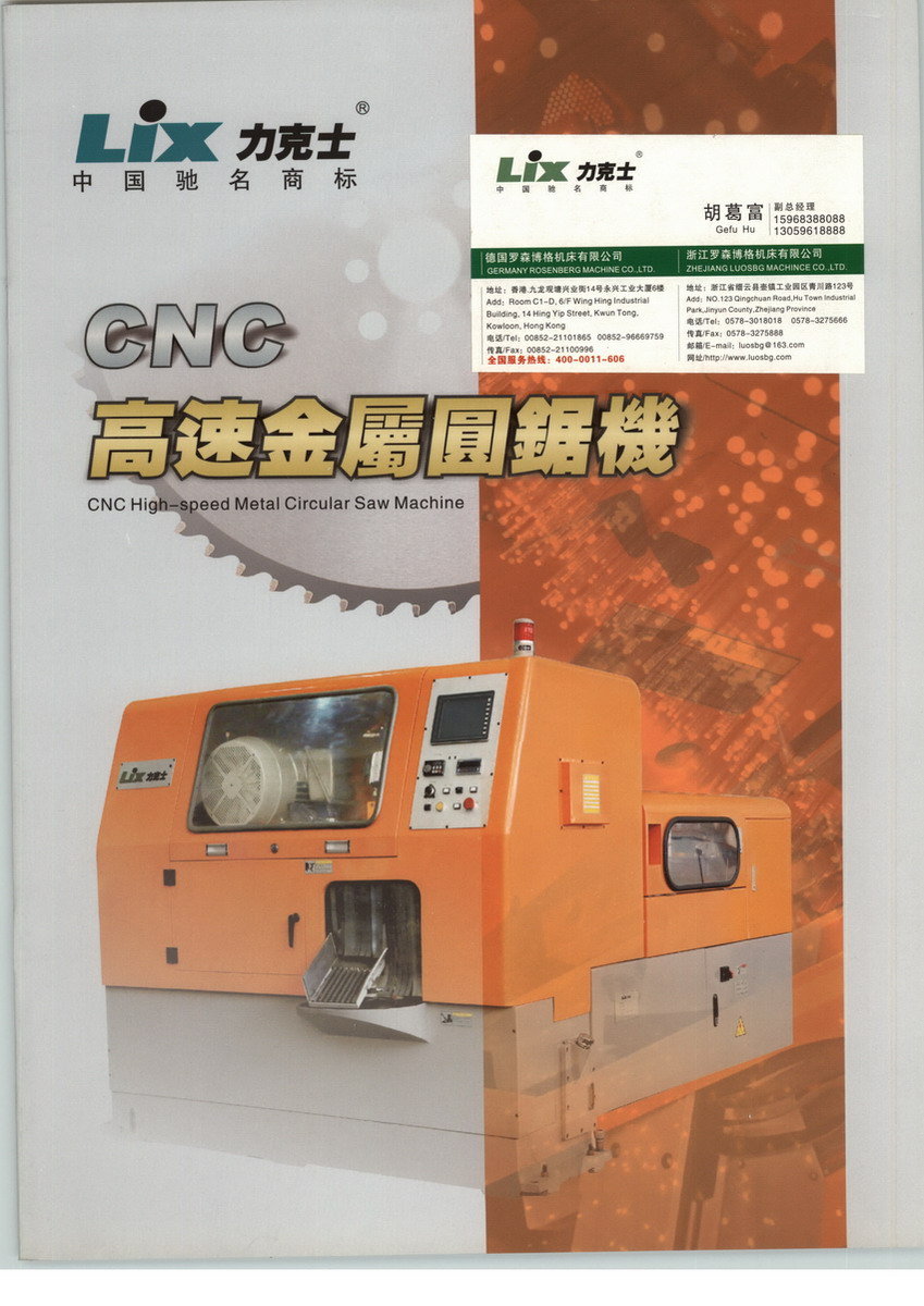 德國(guó)羅森博格機(jī)床有限公司控股的(浙江羅森博格機(jī)床有限公司),總部設(shè)在香港,是一家集研發(fā)、生產(chǎn)、銷(xiāo)售為一體,專(zhuān)業(yè)從事高端機(jī)床金屬加工設(shè)備的綜合性大型企業(yè)。公司的(金屬圓棒. 管. 不銹鋼. 銅.鋁等)高精度鋸切、 彎曲、 倒角、 管端成型、 汽車(chē)零部件加工等產(chǎn)品在機(jī)床制造行業(yè)處于領(lǐng)先地位。(團(tuán)隊(duì)理念) 公司秉承“技術(shù)一流、管理一流、產(chǎn)品一流”的宗旨,在“貢獻(xiàn)社會(huì)、科技創(chuàng)新、追求卓越”理念指導(dǎo)下,團(tuán)結(jié)拼搏、艱苦奮斗,不斷推出新產(chǎn)品,積極引進(jìn)現(xiàn)代化的管理模式,以改革、創(chuàng)新、高效、務(wù)實(shí)的企業(yè)形象展現(xiàn)在中國(guó)高端機(jī)床設(shè)備市場(chǎng)。 (先進(jìn)技術(shù)及榮譽(yù)) 羅森博格堅(jiān)持“以人為本、優(yōu)質(zhì)高效、持續(xù)改進(jìn)、顧客滿(mǎn)意”的質(zhì)量方針,狠抓產(chǎn)品質(zhì)量,把質(zhì)量管理落實(shí)到生產(chǎn)過(guò)程中的每一個(gè)細(xì)節(jié),全面通過(guò)ISO9001-2008國(guó)際質(zhì)量認(rèn)證管理體系,擁有完善的質(zhì)量管理體系,有力地確保了產(chǎn)品的質(zhì)量,公司先后榮獲“國(guó)家高新技術(shù)企業(yè)”;“ 浙江省機(jī)床工具商標(biāo)品牌基地成員企業(yè)”; “中國(guó)機(jī)械安全認(rèn)證企業(yè)”;“行業(yè)規(guī)模大型企業(yè)”; “ AAA級(jí)資信企業(yè)”等榮譽(yù),并獲得多項(xiàng)發(fā)明專(zhuān)利。(產(chǎn)品特點(diǎn)及功能) 公司主要產(chǎn)品有目前最先進(jìn)的CNC高速圓鋸機(jī),CNC數(shù)控彎管機(jī).,金屬切管機(jī).,高速鋁材鋸切機(jī), 管端成型及管端倒角等系列設(shè)備。 在汽車(chē)零部件、造船工業(yè)、 航天工業(yè)、 石油化工、 大型鍋爐、 家具及健身器材等行業(yè)提供所需要的專(zhuān)用機(jī)械和成套設(shè)備。 產(chǎn)品從研發(fā)、設(shè)計(jì)、采購(gòu)、生產(chǎn)、檢驗(yàn)、倉(cāng)儲(chǔ)到銷(xiāo)售等整個(gè)生產(chǎn)線,都運(yùn)用了科學(xué)管理模式,各個(gè)環(huán)節(jié)相互配合,有條不紊,高效有序,成為羅森博格產(chǎn)量和質(zhì)量的堅(jiān)強(qiáng)后盾。(銷(xiāo)售及好評(píng)),以香港為銷(xiāo)售總部和研發(fā)中心. 以浙江為新品測(cè)試與加工基地的跨區(qū)的大型公司. 在華東. 華北. 華南和華中區(qū)域分別設(shè)有區(qū)域分部及客戶(hù)服務(wù)中心. 銷(xiāo)售和服務(wù)部遍布全國(guó)各地. 同時(shí)在全球多個(gè)國(guó)家設(shè)有營(yíng)銷(xiāo)總部.“LIX力克士”品牌憑借精準(zhǔn)的產(chǎn)品定位,深厚的企業(yè)文化,誠(chéng)信的企業(yè)商譽(yù),先進(jìn)的營(yíng)銷(xiāo)模式贏得了廣大消費(fèi)者的信賴(lài),得到了消費(fèi)者和全球合作伙伴的認(rèn)可和好評(píng)?。ㄕ雇磥?lái)) 精湛的技術(shù),優(yōu)質(zhì)的產(chǎn)品,完善的服務(wù)使我們與世界走的更近。我們將積極拓展海外技術(shù)合作與貿(mào)易往來(lái),朝管理規(guī)模化、市場(chǎng)國(guó)際化、產(chǎn)品優(yōu)質(zhì)化的方向發(fā)展。我們的目標(biāo)是制造最好的機(jī)床設(shè)備,把羅森博格打造成高端機(jī)床設(shè)備全球供應(yīng)商。