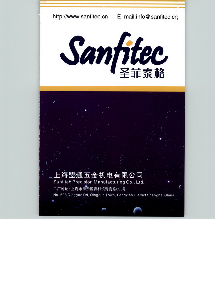 上海盟通五金機(jī)電有限公司是一家技工貿(mào)一體化的綜合性企業(yè)。公司成立于2002年,工廠現(xiàn)位于上海市奉賢區(qū)。2006創(chuàng)立品牌"Sanfitec 圣菲泰格",多年來(lái)一直注重產(chǎn)品質(zhì)量,致力于建立品牌產(chǎn)品。生產(chǎn)設(shè)備有沖床、折彎?rùn)C(jī), 車(chē)床、磨床、焊接機(jī),注塑機(jī) 。檢驗(yàn)設(shè)備有投影儀,硬度儀,膜厚儀,鹽霧測(cè)試儀等。 公司多年來(lái)一直致力于沖壓件、鈑金件、機(jī)加件、焊接件、水暖安裝工具、塑料件的生產(chǎn),經(jīng)驗(yàn)豐富。此外廠內(nèi)還擁有模具車(chē)間,進(jìn)行模具的設(shè)計(jì)和制造。除了來(lái)圖、來(lái)樣加工外,還可以供產(chǎn)品裝配、開(kāi)發(fā)設(shè)計(jì)、質(zhì)檢等各項(xiàng)服務(wù)。工廠周邊有完善的熱處理、表面處理等配套工廠。交通便利,距離上海港及機(jī)場(chǎng)很近,大大節(jié)約運(yùn)輸物流成本。 公司客戶(hù)主要遍及美國(guó)、加拿大、德國(guó)、法國(guó)、意大利、西班牙、荷蘭等歐美發(fā)達(dá)國(guó)家。公司不僅與國(guó)外制造商,分銷(xiāo)商,傭金商合作,還擁有與國(guó)外公司在華辦事處及采購(gòu)商合作的豐富經(jīng)驗(yàn)。 公司以質(zhì)量為本,遵循 “ 尊重、創(chuàng)新、敬業(yè)、共贏”的企業(yè)文化,秉承“客戶(hù)至上,服務(wù)為本,質(zhì)量第一”的經(jīng)營(yíng)理念。上海盟通五金機(jī)電有限公司將致力于成為您首選的工業(yè)零配件的合作伙伴!