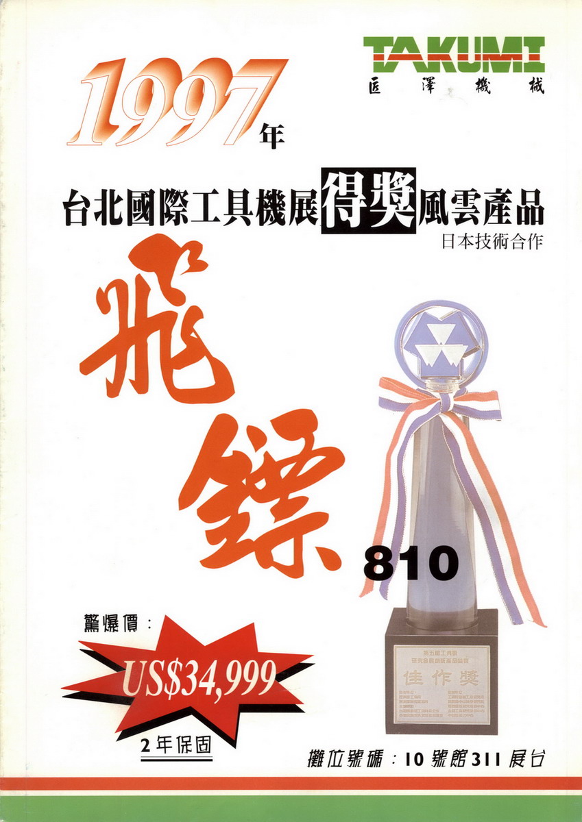臺(tái)灣匠澤機(jī)械股份有限公司成立于1988年,到目前為止已經(jīng)有21年的歷史。臺(tái)灣匠澤自建立至今,一直致力于生產(chǎn)臺(tái)灣匠澤高速加工中心,其產(chǎn)品已經(jīng)在大陸享有盛名。買高速加工中心都會(huì)考慮選擇臺(tái)灣匠澤的產(chǎn)品。其公司擁有一流的技術(shù)指導(dǎo),優(yōu)良的企業(yè)文化,先進(jìn)的產(chǎn)品理念。