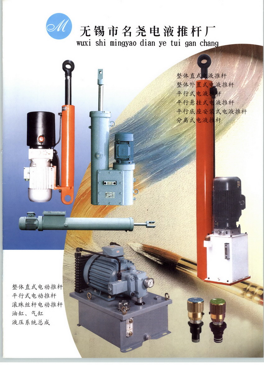 無錫市名堯電液推桿廠是專門從事電動推桿、電液推桿、油缸,液壓站計(jì)、制造的專業(yè)企業(yè)。 名堯最大的優(yōu)勢是擁有一批具有豐富實(shí)踐經(jīng)驗(yàn)的專業(yè)技術(shù)人員,專門從事產(chǎn)品的設(shè)計(jì)與制造,并引進(jìn)國外先進(jìn)的制造工藝,能在最短的時(shí)間內(nèi)為用戶提供高質(zhì)量的產(chǎn)品,全方位地滿足冶金、礦山、電力、煤炭、鋼鐵、水泥、醫(yī)療、交通、運(yùn)輸、糧食、化工、港口裝卸等部門的需求。