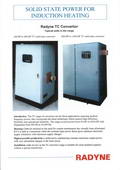 Radyne designs, fabricates, sells, and services Induction and Dielectric Heating Systems, both of which can incorporate various standardized modules or specialized systems that can easily be retrofitted to JIT or cell concept arrangements.Radyne designs and manufactures a complete range of induction heat treating (hardening, annealing, tempering), wire heating, pipe heating and coating, shrink fitting, forging, melting, brazing, drying, and soldering systems.All systems operate in conjunction with Radyne Power Sources. Radyne Standard Power Sources encompass Radio Frequency Generators with power ratings of 1 kW through 100 kW and Solid State Inverters with output from 2.5 kW through 5000 kW.