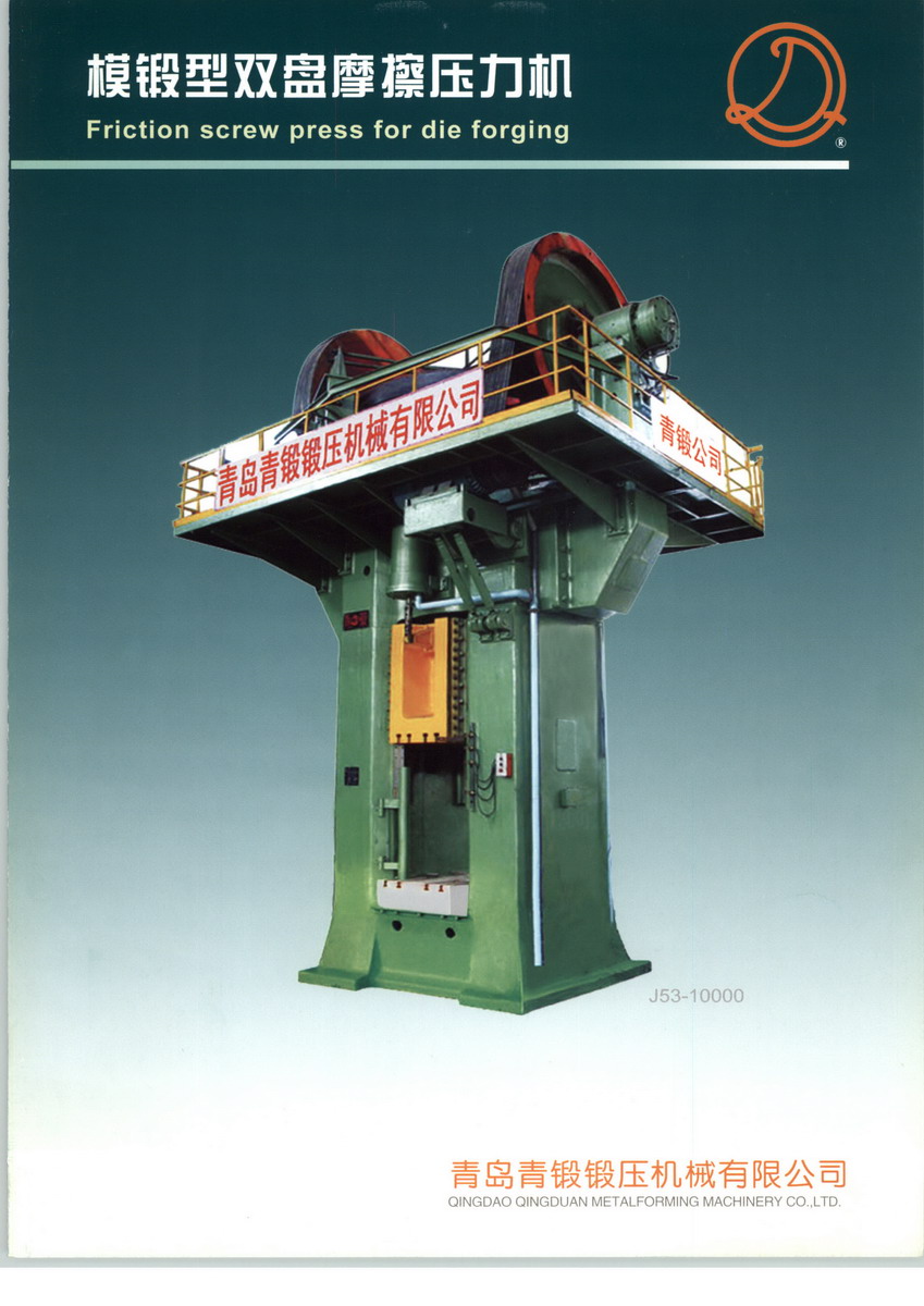 公司產(chǎn)品注冊(cè)商標(biāo)為“青鍛”牌。主導(dǎo)產(chǎn)品有J53系列模鍛型雙盤摩擦壓力機(jī),J54系列精壓型雙盤摩擦壓力機(jī),J55系列離合器式螺旋壓力機(jī),EP、EPC系列數(shù)控電動(dòng)螺旋壓力機(jī),MP系列熱模鍛壓力機(jī),MFP系列多工位摩擦壓力機(jī),J93、J67、J69系列摩擦壓磚機(jī),D51、D52、D53K系列數(shù)控輾環(huán)機(jī)等。產(chǎn)品曾榮獲國家銀質(zhì)獎(jiǎng)、國家科技進(jìn)步獎(jiǎng)、國家級(jí)新產(chǎn)品獎(jiǎng)及部省市優(yōu)質(zhì)產(chǎn)品獎(jiǎng),2006年又榮獲山東省名牌產(chǎn)品、山東省著名商標(biāo)、青島市著名商標(biāo)稱號(hào)。產(chǎn)品銷往港、澳、臺(tái)等全國各省市,出口東南亞、印度、韓國、意大利、日本、中亞、東歐等世界30多個(gè)國家和地區(qū)。