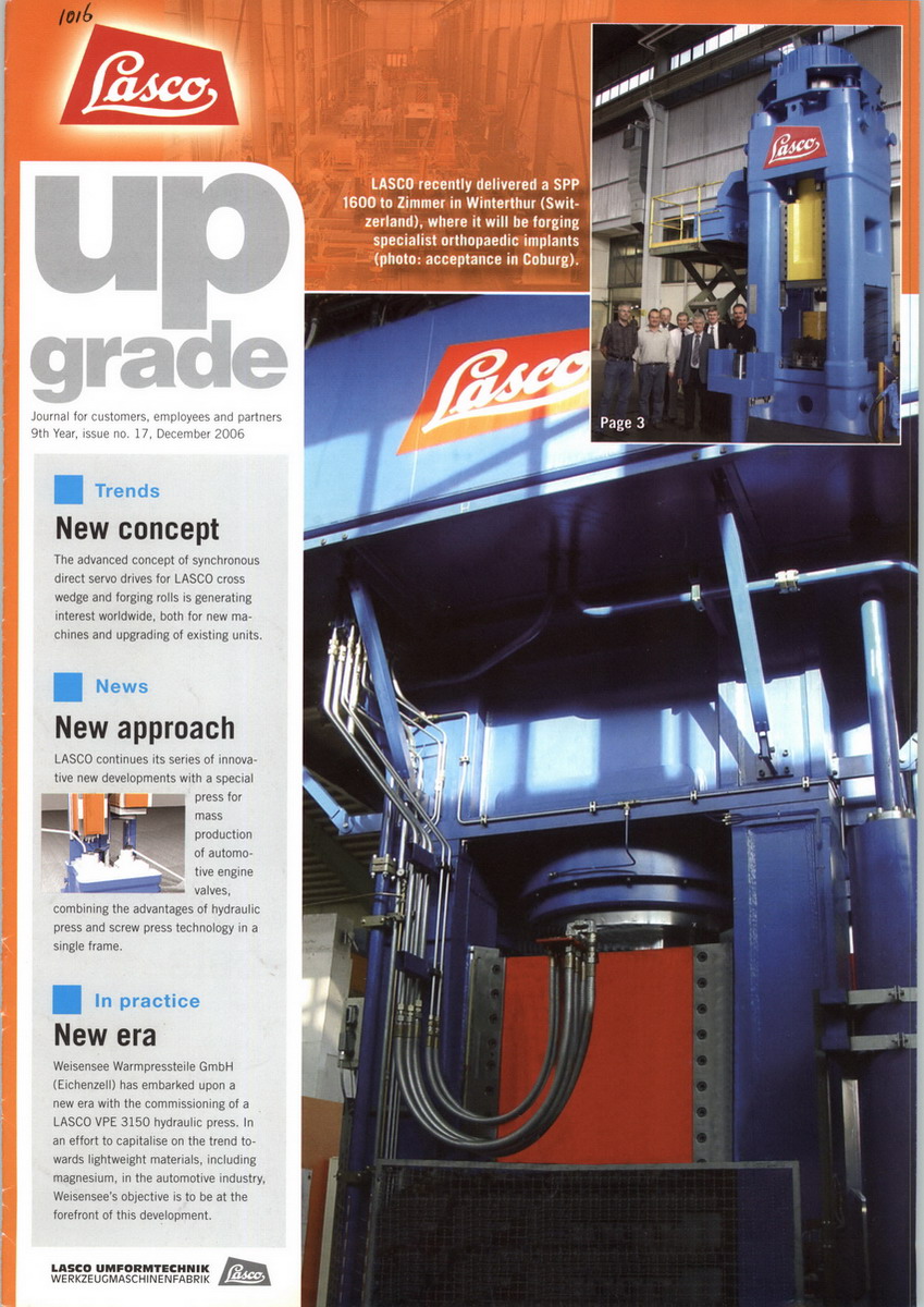 自從Langenstein和Schemann 1863年在德國(guó)科堡創(chuàng)立LASCO開(kāi)始。LASCO就致力于在軍事、航天航空、汽車、船舶、化工、醫(yī)療、采礦和建筑工業(yè)領(lǐng)域?yàn)橛脩籼峁┳罹攥F(xiàn)代化、最經(jīng)濟(jì)的鍛壓及成型設(shè)備生產(chǎn)線,LASCO產(chǎn)品以其高效率、高質(zhì)量和不斷創(chuàng)新而久負(fù)盛名。LASCO一向遵循市場(chǎng)的要求,不僅專注于鍛造及板材成型領(lǐng)域,LASCO設(shè)備在粉末冶金等特殊工業(yè)也廣泛應(yīng)用。同時(shí),在建筑新型墻體材料領(lǐng)域,LASCO設(shè)備及生產(chǎn)線也早已得到客戶的廣泛認(rèn)可。