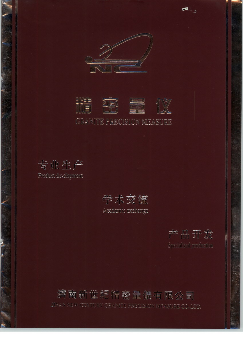 新世紀(jì)精密量?jī)x有限公司是由新世紀(jì)集團(tuán)投資與山東工業(yè)大學(xué)、哈爾賓機(jī)械工業(yè)學(xué)院合作,充分利用“濟(jì)南青”花崗石的物理特性,主要為國(guó)內(nèi)外大型高、精、尖企業(yè)專業(yè)生產(chǎn)高精度的量?jī)x、機(jī)械構(gòu)件產(chǎn)品,是同行業(yè)中唯一一家集專業(yè)生產(chǎn)、學(xué)術(shù)交流、產(chǎn)品開發(fā)于一體的現(xiàn)代化企業(yè)。 新世紀(jì)精密量?jī)x有限公司總投資1000萬(wàn)元人民幣,占地15000平方米,機(jī)械加工車間2100平方米,專業(yè)恒溫加工車間1200平方米,公司把現(xiàn)代科學(xué)技術(shù)與傳統(tǒng)加工工藝有機(jī)的結(jié)合?,F(xiàn)有員工86人,其中專業(yè)資深教授4名,專業(yè)技師12名,8年以上同行業(yè)工作經(jīng)驗(yàn)的專業(yè)技術(shù)加工人員28名,配備了數(shù)控、紅外線專業(yè)機(jī)械加工設(shè)備,采用“瑞士”的檢測(cè)手段,對(duì)所有數(shù)據(jù)進(jìn)行計(jì)算機(jī)處理,確保產(chǎn)品質(zhì)量??缮a(chǎn)8000x3500x500mm以下的精密平板、工作臺(tái)、機(jī)械構(gòu)件、平尺、方尺、角尺、V型塊、梯形快、Z軸、各種表座等產(chǎn)品,并能根據(jù)客戶要求來(lái)樣加工,產(chǎn)品遠(yuǎn)銷日本、韓國(guó)、美國(guó)、新加坡和以色列等。