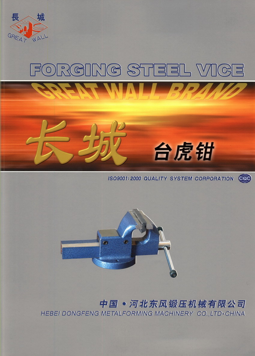 鍛鋼多用臺(tái)虎鉗系國(guó)內(nèi)獨(dú)家生產(chǎn),產(chǎn)品規(guī)格有3″—8″,分為固定型和活動(dòng)型。長(zhǎng)城牌鍛鋼多用臺(tái)虎鉗采用優(yōu)質(zhì)碳結(jié)鋼經(jīng)模鍛、專(zhuān)機(jī)加工制造。該產(chǎn)品體積小、重量輕、夾持力大、壽命長(zhǎng)、動(dòng)作準(zhǔn)確、外型美觀,是國(guó)際市場(chǎng)上五金工具中的中、高檔商品。該產(chǎn)品廣泛適用于工廠、作坊、維修部門(mén),是一種夾持工件的必備工具。產(chǎn)品遠(yuǎn)銷(xiāo)歐盟、拉美、日、韓及中國(guó)臺(tái)灣等十三個(gè)國(guó)家和地區(qū)。公司擁有通用機(jī)械設(shè)備160臺(tái)套,模鍛設(shè)備10余臺(tái)套,熱處理設(shè)備6臺(tái)套,各種專(zhuān)機(jī)設(shè)備60多臺(tái)套,具有下料、模鍛、焊接、機(jī)加工、熱處理、到裝配等全套機(jī)械生產(chǎn)能力。