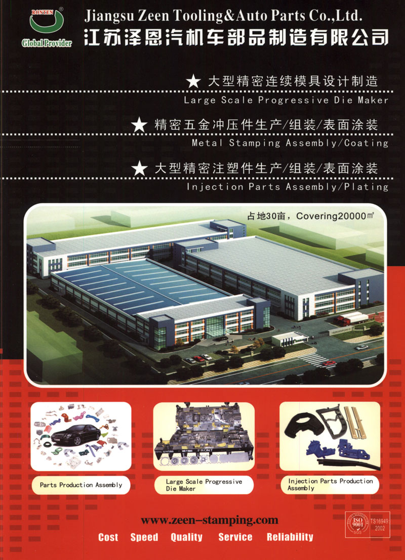 江蘇澤恩汽機(jī)車部品制造有限公司,每一年,澤恩都獲得取得扎實穩(wěn)步的成長?,F(xiàn)在已經(jīng)成為國內(nèi)金屬沖壓和精密模具行業(yè)后起之秀。 澤恩主要從事大型連續(xù)模具,高速級進(jìn)模設(shè)計制造和塑料制品、五金沖壓制品的生產(chǎn),產(chǎn)品涉及到家電、汽車、通訊、電子、日用品、醫(yī)療器械等領(lǐng)域。