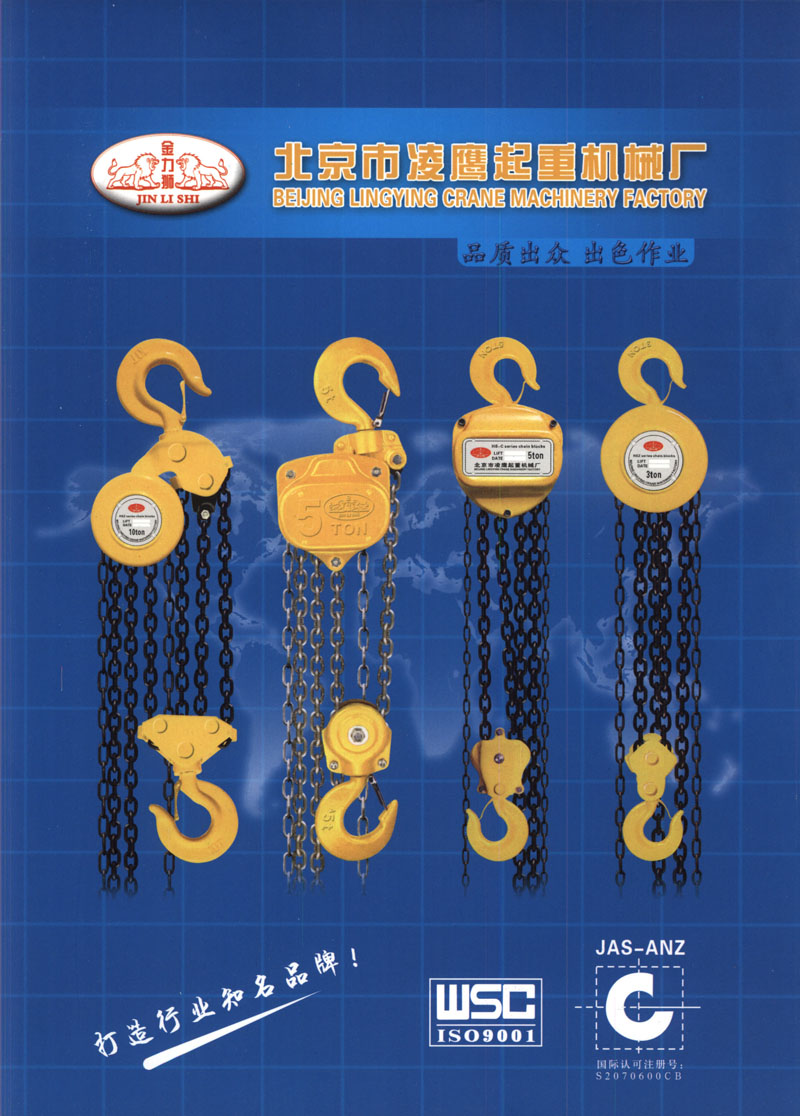 公司產(chǎn)品通過ISO9001:2000認(rèn)證, 歐洲CE認(rèn)證,GS認(rèn)證,產(chǎn)品由中國人民財(cái)產(chǎn)保險(xiǎn)公司承保。完善的質(zhì)量管理體系是生產(chǎn)優(yōu)良產(chǎn)品和服務(wù)的可靠保證,多年得豐富生產(chǎn)經(jīng)驗(yàn)及高效精干的營銷隊(duì)伍和強(qiáng)大的服務(wù)網(wǎng)絡(luò),使凌鷹起重能滿足每一位客戶的需要。產(chǎn)品不僅暢銷全國二十八個(gè)省市,公司擁有自營進(jìn)出口權(quán),產(chǎn)品遠(yuǎn)銷歐洲、美洲、非洲等幾十個(gè)國家和地區(qū)。與國內(nèi)外客戶建立了良好的業(yè)務(wù)聯(lián)系,凌鷹起重為用戶提供方便快捷的全程服務(wù),并以優(yōu)質(zhì)的產(chǎn)品質(zhì)量贏得社會(huì)各界的好評(píng)。