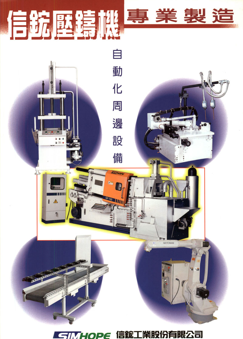 信鋐公司創(chuàng)立于1984年,從事機(jī)械加工及自行開發(fā)、生產(chǎn)壓鑄機(jī)近30載,累積豐富專業(yè)經(jīng)驗(yàn),并以自有品牌「SIMHOPE」?fàn)I銷全世界,因機(jī)臺(tái)適用性及耐用性優(yōu)良,客戶均有口皆碑,而機(jī)臺(tái)之開發(fā)、設(shè)計(jì)、制造、組裝皆于臺(tái)灣工廠進(jìn)行,各種技術(shù)皆已相當(dāng)純熟,除自有廠牌之機(jī)臺(tái)供應(yīng)、服務(wù)無虞,并可依客戶需求搭配、整合其他品牌新、舊設(shè)備,可有效解決任何壓鑄上的問題。