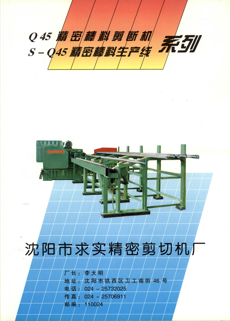沈陽市求實精密剪切機廠,是專門從事精密棒料剪斷機的研制開發(fā)和生產(chǎn)的企業(yè)。企業(yè)技術(shù)力量雄厚,集中了國內(nèi)著名的精密棒料剪斷機設計、制造專家。我廠研制的精密棒料生產(chǎn)線,不僅擋住了進口,填補了國內(nèi)空白,還被中國鍛壓協(xié)會列入1996年8月至2001年9月大事件中。