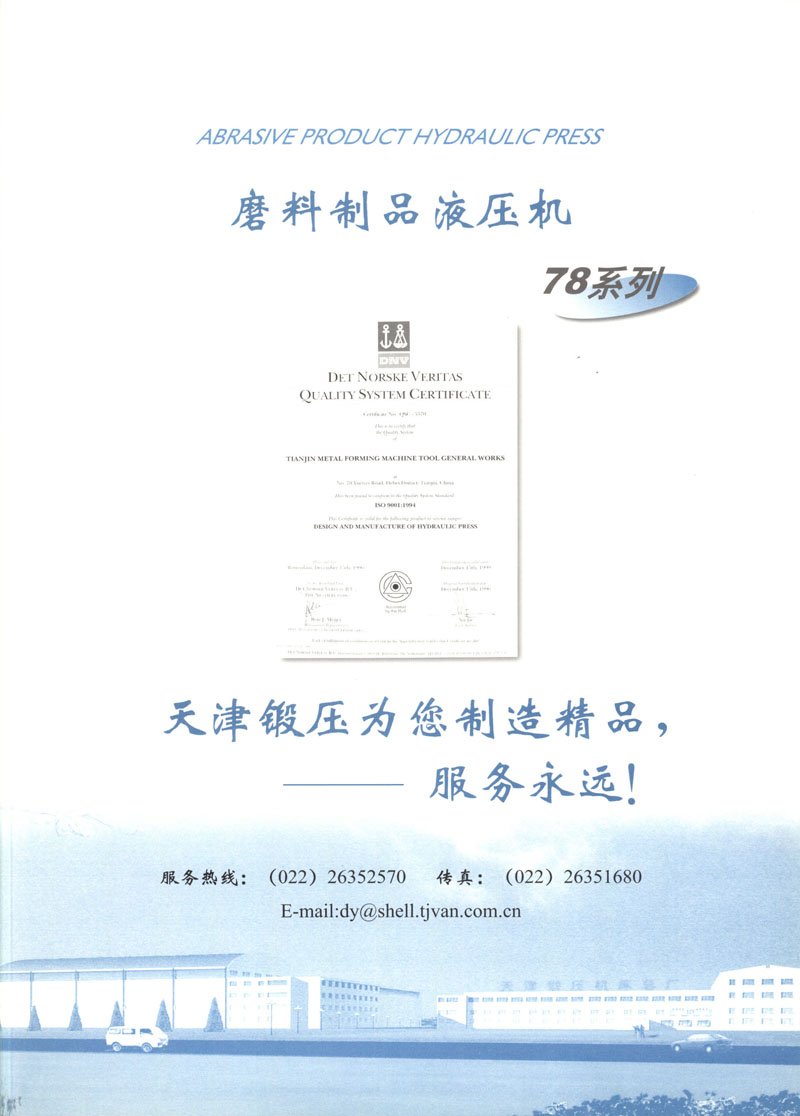 天津市鍛壓機(jī)床總廠是我國(guó)起步最早的企業(yè),現(xiàn)有固定資產(chǎn)2.4億元各類專業(yè)技術(shù)人員480人,是機(jī)械部大型骨干企業(yè)。自我廠自行設(shè)計(jì)國(guó)內(nèi)第一臺(tái)液壓機(jī),開創(chuàng)了我國(guó)中小型液壓機(jī)生產(chǎn)歷史以來,目前擁有26個(gè)系列,300余品種,產(chǎn)品從80KN至5000KN,以形成年產(chǎn)1200臺(tái)各類液壓機(jī)的生產(chǎn)能力,居國(guó)內(nèi)同行業(yè)之首。1983年YT32-315四柱液壓機(jī)獲國(guó)家銀牌,1990年YT32-630/1030雙動(dòng)力拉伸液壓機(jī)一舉榮獲同行業(yè)唯一的國(guó)家金獎(jiǎng)另有部?jī)?yōu)產(chǎn)品3項(xiàng),市優(yōu)產(chǎn)品5項(xiàng)。產(chǎn)品廣泛適用于汽車制造、粉末冶金、金屬冷擠、輕工家電、化工機(jī)戒、航空航天、模具磨料、機(jī)戒制造等行業(yè),被國(guó)家指定為替代進(jìn)口產(chǎn)品,行銷全國(guó),產(chǎn)品出口到日本、荷蘭、東南亞等20多個(gè)地區(qū)和國(guó)家、市場(chǎng)占有率居全國(guó)同行業(yè)第一。