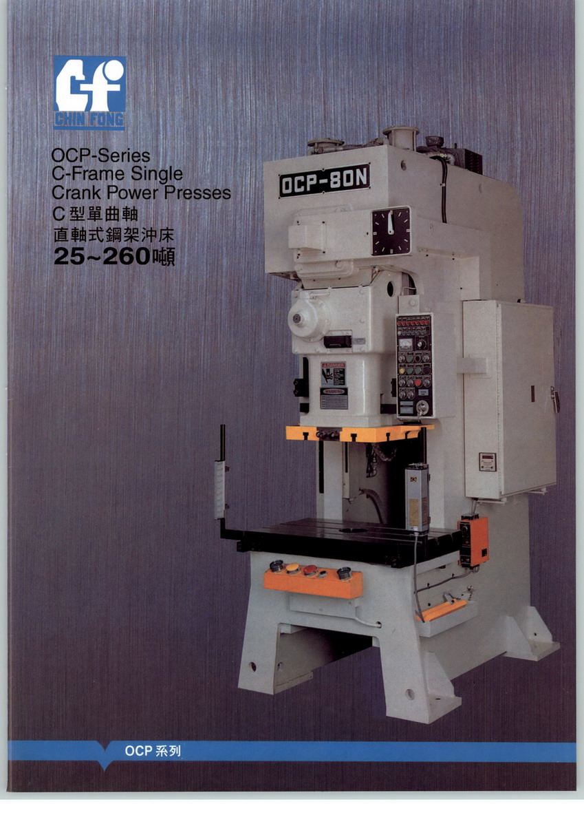 金豐(中國(guó))機(jī)械工業(yè)有限公司生產(chǎn)的鍛壓機(jī)械產(chǎn)品系以母公司的設(shè)計(jì)圖紙、生產(chǎn)工藝和技術(shù)、管理體系為藍(lán)本,與母公司進(jìn)行同步生產(chǎn)壓力機(jī)。自1996年投產(chǎn)以來(lái),通過(guò)了出口產(chǎn)品質(zhì)量許可證及ISO-9001:2000版國(guó)際品質(zhì)認(rèn)證。同時(shí)為迎接高性能、高自動(dòng)化時(shí)代的來(lái)臨,公司全部采用來(lái)自日本、臺(tái)灣之大型、高效、精密之生產(chǎn)設(shè)備,并以此來(lái)穩(wěn)定及提升產(chǎn)品品質(zhì),產(chǎn)品涵蓋2400噸級(jí)以下開(kāi)式、閉式、高速、冷熱鍛各種類(lèi)型機(jī)械式?jīng)_床,主要客戶有天津豐田汽車(chē)、南昌江鈴汽車(chē)、章丘海爾、深圳富金、美國(guó)STAMTEC等公司。