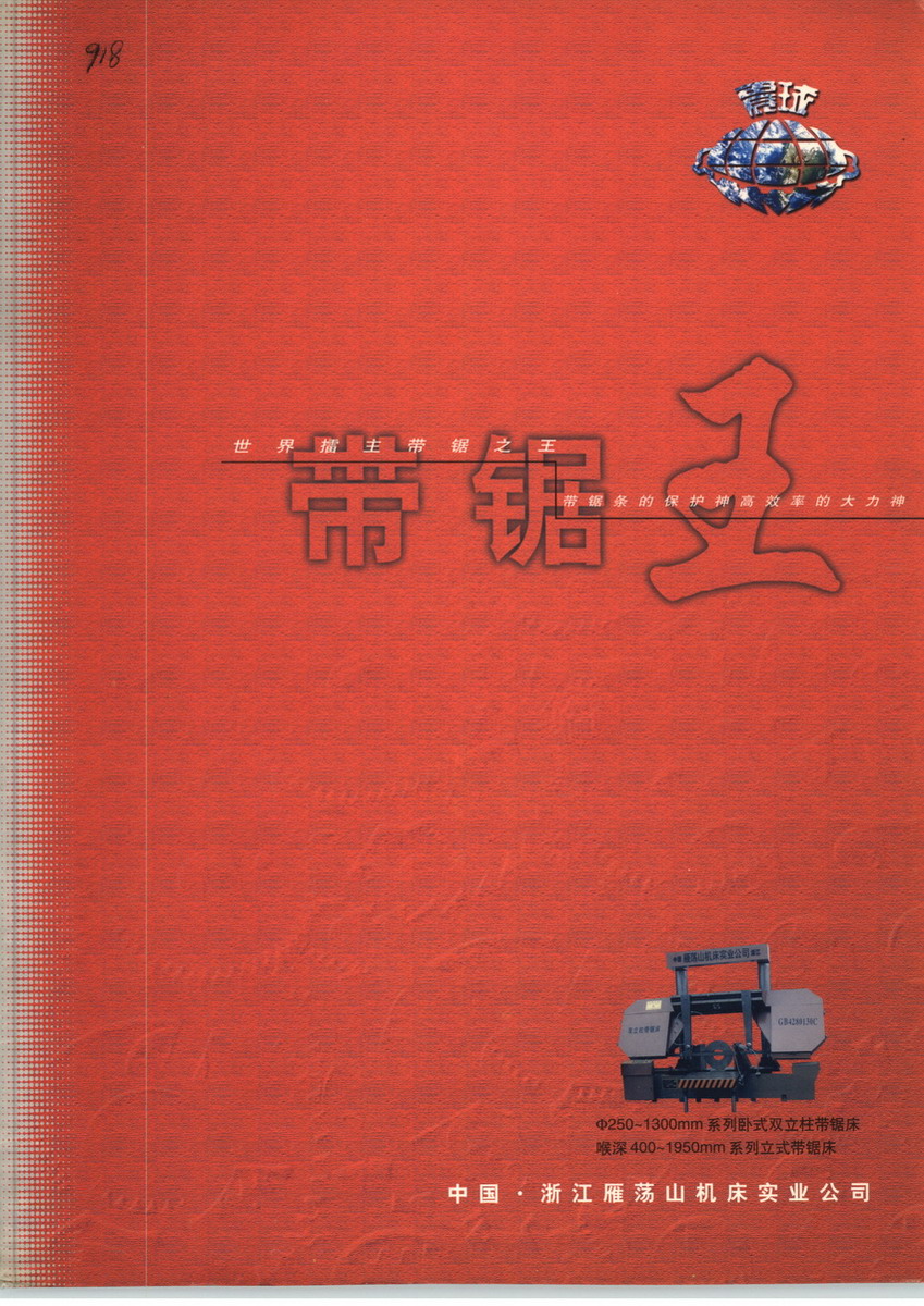 浙江省雁蕩山機(jī)床有限公司創(chuàng)辦于1987年,專業(yè)從事帶鋸床、帶鋸條的研究和生產(chǎn),公司現(xiàn)有員工500人,下設(shè)總廠、鑄造分廠、鈑金分廠、磨齒機(jī)分廠、焊接機(jī)分廠,全國(guó)各省共有40個(gè)辦事處,總廠占地面積13800m2,建筑面積10000m2,下設(shè):金工車間、裝配車間、鋸條車間、鈑金車間、噴漆車間、成品鋸帶焊接車間,主要產(chǎn)品:臥式、立式及臥立旋轉(zhuǎn)三大類30種規(guī)格70余種機(jī)型,年生產(chǎn)能力3000臺(tái)套以上,鋸條200萬(wàn)米。