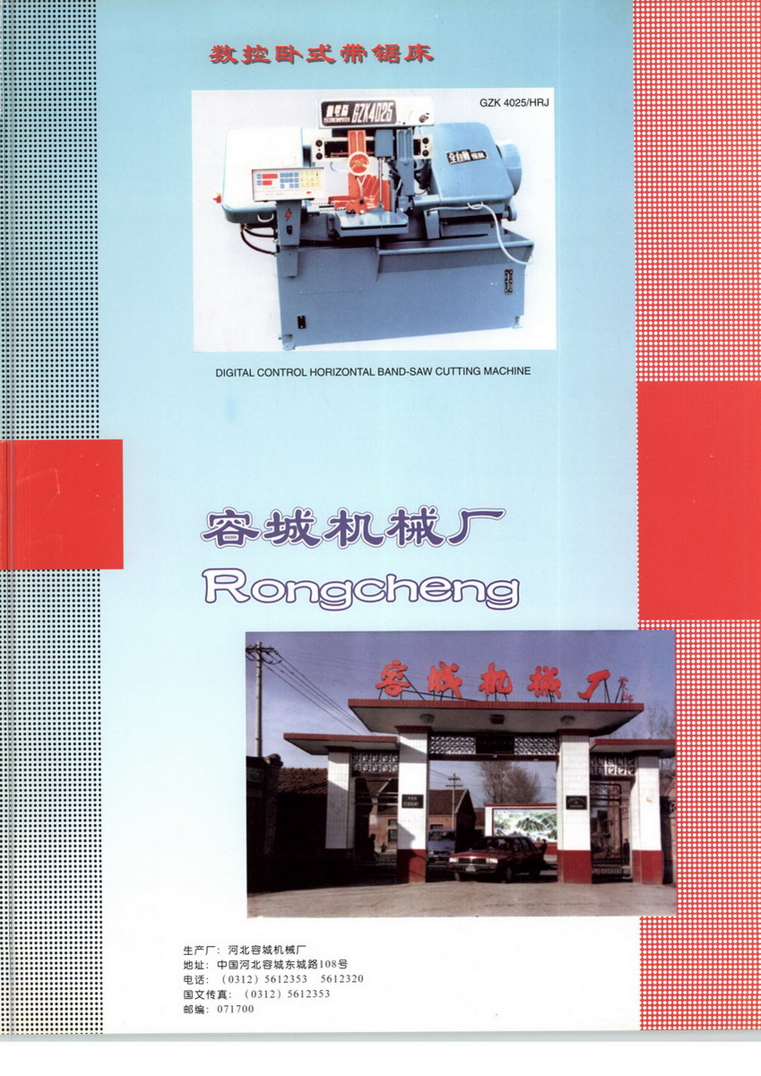 容城機械廠主要產品數控臥式帶鋸床、臥式半自動金屬帶鋸床。