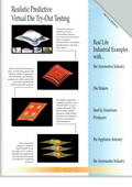 在報價階段,用戶能夠得到板料邊界線并進行排樣,用于材料費用和拉延模的評估。在可行性論證階段,模面設計工程師能夠建立基于B-樣條的工具型面,并且調(diào)整得到?jīng)]有破裂、起皺等缺陷的成形工藝的詳細參數(shù),包括:全工序結(jié)果、包邊結(jié)果、修邊線展開和優(yōu)化、板料線優(yōu)化。在精確驗證階段,工程師可以精確地預測回彈并據(jù)此補償模具(包括拉延模面和后工序模面),還可以檢測外觀缺陷和可視化缺陷用于生產(chǎn)線的對比??尚行哉撟C和精確驗證的軟件設置是相似的,區(qū)別只在于計算結(jié)果的精度不同。