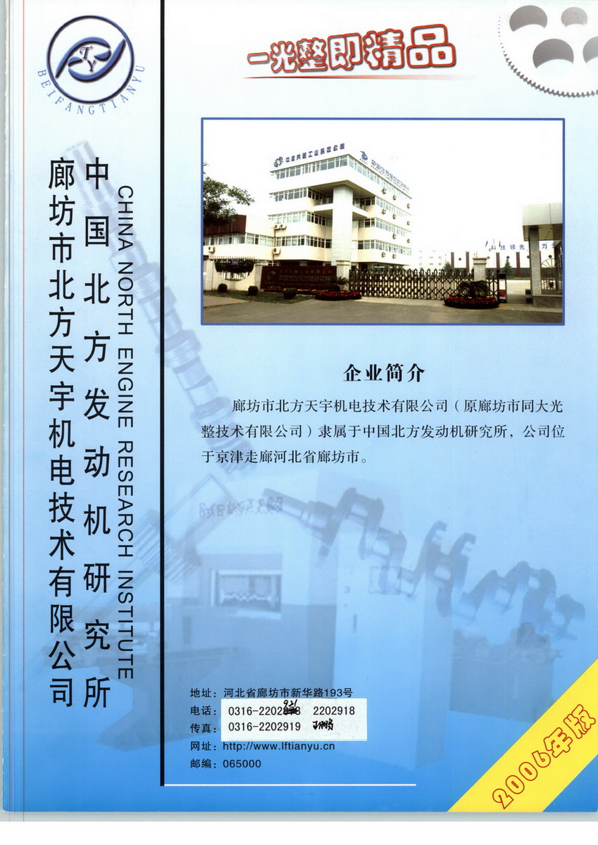廊坊市北方天宇機電技術(shù)有限公司,隸屬于中國兵器工業(yè)集團北方通用動力集團有限公司,是河北省省級高新技術(shù)企業(yè),中國機械工程學會光整技術(shù)委員會常務(wù)理事單位。