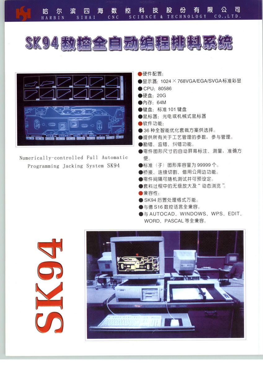 哈爾濱四海數(shù)控科技股份有限公司成立于1987年4月,是哈爾濱市第一家以光、機(jī)、電一體化數(shù)控技術(shù)的研究、開發(fā)與應(yīng)用作為發(fā)展方向的民營高科技企業(yè)。哈爾濱四海數(shù)控科技股份有限公司是黑龍江省科技龍頭企業(yè)之一,也是全國數(shù)控切焊機(jī)械行業(yè)規(guī)模最大、品種最全、技術(shù)最先進(jìn)、唯一有產(chǎn)品出口的龍頭企業(yè)。公司連續(xù)七年被評為哈爾濱高新技術(shù)產(chǎn)業(yè)開發(fā)區(qū)先進(jìn)高新技術(shù)企業(yè),同時(shí)也被評為黑龍江省納稅光榮企業(yè)。多年來,公司經(jīng)過不斷發(fā)展,科研開發(fā)體系完善,運(yùn)營健康有序,形成了較為雄厚的技術(shù)積淀,此外公司資產(chǎn)優(yōu)良,人才儲備充足,管理科學(xué)規(guī)范,所有這一切,為公司高新技術(shù)產(chǎn)品的產(chǎn)業(yè)化產(chǎn)業(yè)化發(fā)展提供了堅(jiān)實(shí)基礎(chǔ)。先進(jìn)的技術(shù)有了科學(xué)的經(jīng)營機(jī)制承載,使得企業(yè)生產(chǎn)力得到了迅猛發(fā)展,公司研制生產(chǎn)的SKG系列數(shù)控設(shè)備、數(shù)控H型鋼全自動(dòng)生產(chǎn)線、數(shù)控箱形梁全自動(dòng)生產(chǎn)線、數(shù)控方矩形鋼管切割焊接自動(dòng)生產(chǎn)線、立體車庫、立體倉庫等投放市場便以其優(yōu)越的性能,迅速得到了市場的認(rèn)同。在質(zhì)量管理控制上,公司始終堅(jiān)持精益求精的質(zhì)量方針,視產(chǎn)品質(zhì)量為企業(yè)生命。嚴(yán)格按照ISO9001 質(zhì)量體系標(biāo)準(zhǔn)的要求,規(guī)范各質(zhì)量控制環(huán)節(jié)行為,最終形成質(zhì)量手冊、程序文件、工藝手冊、操作指導(dǎo)書和檢測規(guī)范等質(zhì)量體系文件,并健全了公司質(zhì)量管理組織機(jī)構(gòu),公司于1997年在同行業(yè)率先通過了ISO9001 質(zhì)量體系認(rèn)證。為了更好地為用戶服務(wù),四海在北京、濟(jì)南、深圳、上海、成都、鄭州等地設(shè)立了十幾個(gè)辦事機(jī)構(gòu),而且建立了跟蹤服務(wù)和尋訪服務(wù)制度,及時(shí)、快捷、準(zhǔn)確地與用戶溝通,解決用戶的疑難問題。而且四海每年舉辦一到二次的用戶肯談會(huì)及新產(chǎn)品推,聽取用戶在使用當(dāng)中發(fā)現(xiàn)的問題和建議,從中吸取經(jīng)濟(jì)和教訓(xùn),從而不斷提高四海產(chǎn)品的性能和質(zhì)量。
