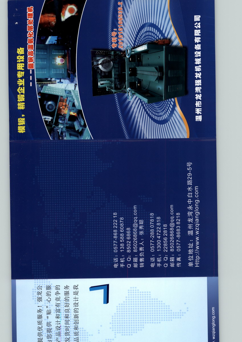 溫州市龍灣強龍機械設備有限公司位于中國浙江溫 州市龍灣區(qū),離機場5公里,火車站25公里。自從1992年成立以 來,專業(yè)生產(chǎn)各種非標耐高溫鏈條、煤氣爐、油爐、水封爐鏈條,罩式爐放料架,懸臂吊,(鋼帶,鋁帶,銅帶,開料機,分條機), 高溫圓鋼鍛壓件去氧化層設備(金屬去皮機),等其他機械零部件生產(chǎn),且有多個產(chǎn)品已經(jīng)申請國家專利,其中鏈條板申請專利號為:20042009620.6。高溫圓鋼鍛壓件去皮機---發(fā)明專利號為;201010166536.2。實用新 型號為;201020183777.3。公司著力在引進先進設備,技術(shù)開發(fā),專業(yè)人才培養(yǎng)等方面不斷的加大投入,成為眾多客戶信賴的長期合作伙伴 !專業(yè)并熱情洋溢的強龍 員工,秉承“做你所思,想你未想”的服務理念,堅 持“快速,準確,規(guī)范”的為客戶提供優(yōu)質(zhì)服務!強龍 公司期待著您的蒞臨指導,為您提供“貼”心的服 務,共創(chuàng)美好未來!獨特的產(chǎn)品設計和富有競爭的價格是我們的優(yōu)勢!準時的發(fā)貨時間和良好的服務是我們的承諾!優(yōu)秀的產(chǎn)品品質(zhì)和創(chuàng)新的設計是我們發(fā)展的動力! 本公司生產(chǎn)的產(chǎn)品目前已經(jīng)被國內(nèi)多家公司使用,其中:鏈條使用單位有:安徽精誠銅業(yè)、安徽鑫科新材料銅帶、上海達納銅鋁業(yè)、江蘇環(huán)勝銅業(yè)、江西金發(fā)銅業(yè)、江西盛和銅業(yè)、江西同心銅業(yè)、溫 州昌源銅業(yè)、溫州東方銅帶等有關(guān)銅帶單位。鐘罩式爐料架使用單位有:安徽精誠銅業(yè)、上 海達納銅鋁業(yè)、上海松發(fā)合金材料、江西盛和銅業(yè)、江西同心銅業(yè)、溫州昌源銅業(yè)、溫州銅帶、溫州華寶銅業(yè)、溫州東方銅帶、浙江博強銅業(yè)、福建洪泰銅業(yè)等有關(guān)銅帶單位。