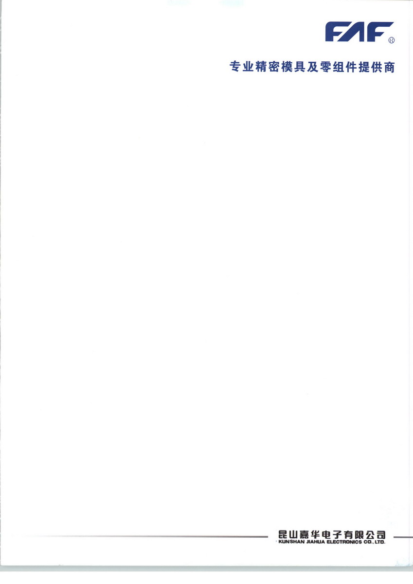 昆山嘉華電子有限公司2002年成立,隸屬于1994年創(chuàng)建的華富集團(tuán),是集精密模具研發(fā)制造和精密連接器產(chǎn)品規(guī)?;a(chǎn)于一體的專業(yè)連接器解決方案提供商,產(chǎn)品應(yīng)用于消費(fèi)電子、通訊設(shè)備、家用電器、汽車電子等領(lǐng)域。昆山嘉華電子有限公司建有CNAS資質(zhì)認(rèn)可的檢測實驗室、江蘇省企業(yè)技術(shù)中心、江蘇省精密高速模具工程技術(shù)研究中心,被認(rèn)定為江蘇省高新技術(shù)企業(yè)、全國模具標(biāo)準(zhǔn)化技術(shù)委員會委員單位、中國精密沖壓模具重點(diǎn)骨干企業(yè),主導(dǎo)起草了《電連接器級進(jìn)模技術(shù)條件》、《連續(xù)嵌件塑料注射模技術(shù)條件》行業(yè)標(biāo)準(zhǔn),已通過ISO9001、ISO/TS16949、ISO17025、SONY GP、ISO14001等多項管理體系認(rèn)證。