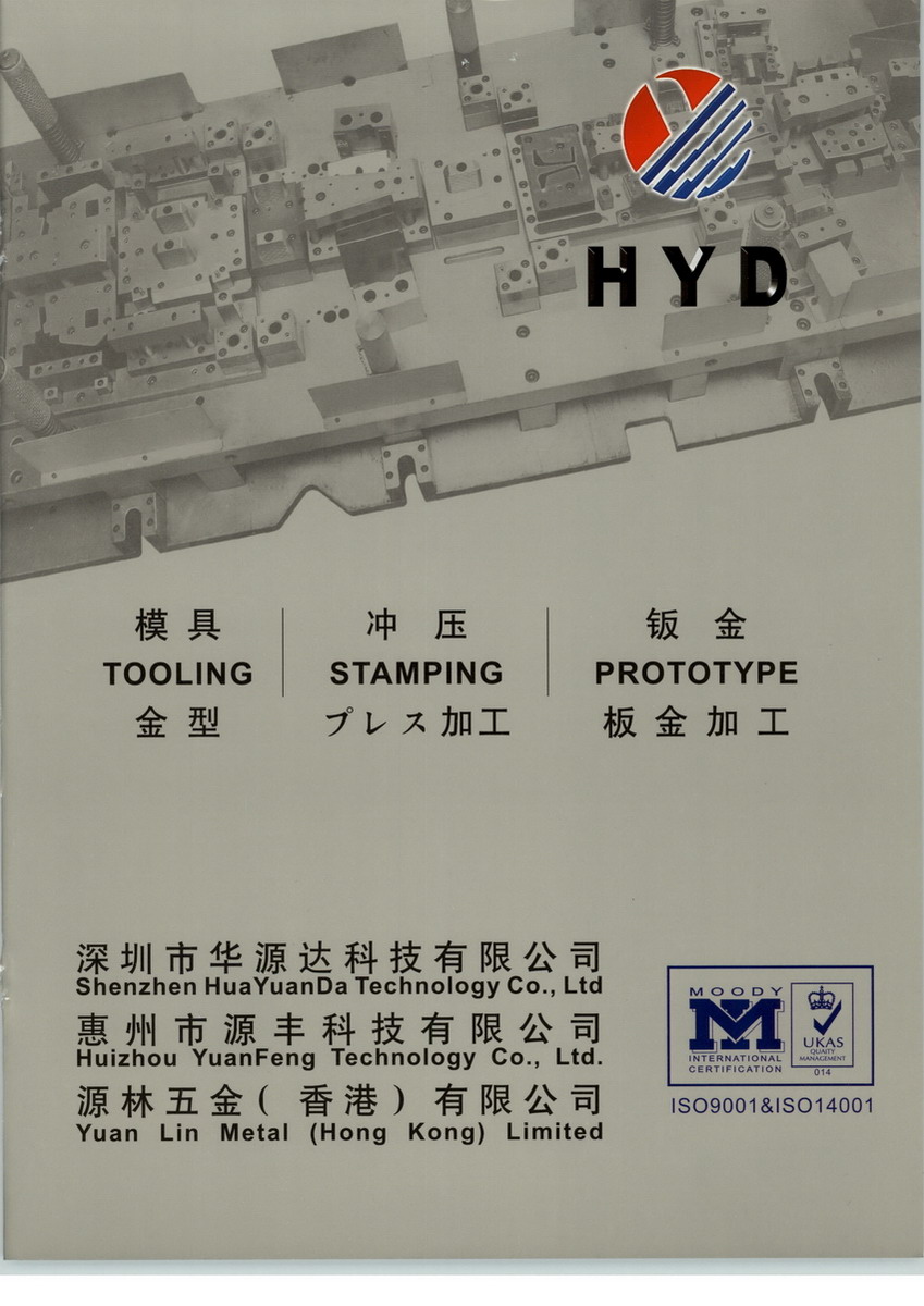 深圳市華源達(dá)科技有限公司成立于1999年, 是一家專業(yè)的精密五金沖壓模具制造商和五金產(chǎn)品生產(chǎn)商。在全體員工的努力下公司通過(guò)了ISO/TS16949:2009, ISO9001:2008 和 ISO1400:2004 認(rèn)證,并且成功導(dǎo)入ERP 企業(yè)管理系統(tǒng)。公司致力于汽車結(jié)構(gòu)件、覆蓋件等各種冷成型沖壓模具的設(shè)計(jì)、制造,以及五金沖壓產(chǎn)品的生產(chǎn)。自成立以來(lái),公司立足于全球,以積極的信念和誠(chéng)信取創(chuàng)造價(jià)值;秉承為市場(chǎng)提供高品質(zhì)、高效率、高技術(shù)產(chǎn)品的宗旨努力創(chuàng)新;同時(shí)提示員工的職業(yè)技能,與企業(yè)一同成長(zhǎng)。精湛的技術(shù)和優(yōu)質(zhì)的服務(wù)贏得了客戶的廣泛好評(píng)。