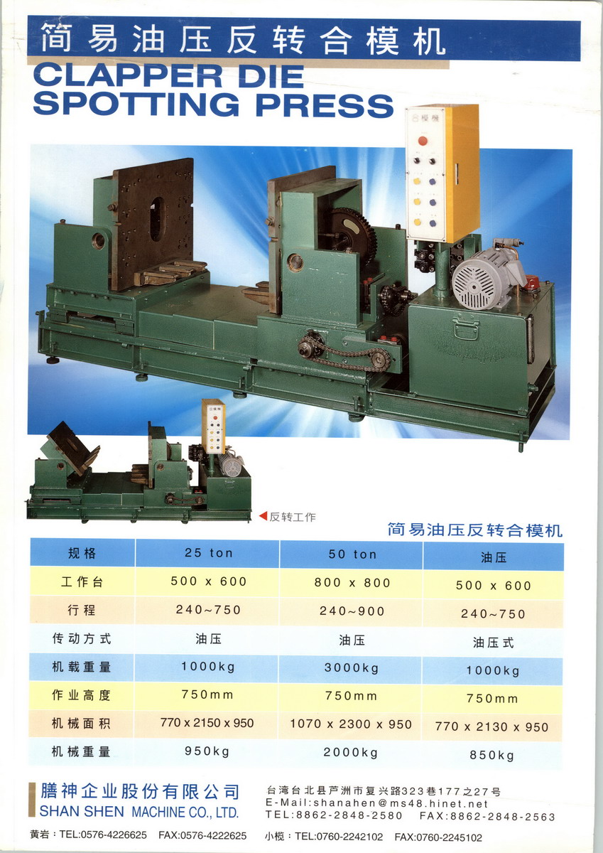 膳神企業(yè)股份有限公司主營(yíng)簡(jiǎn)易油壓反轉(zhuǎn)合模機(jī)。