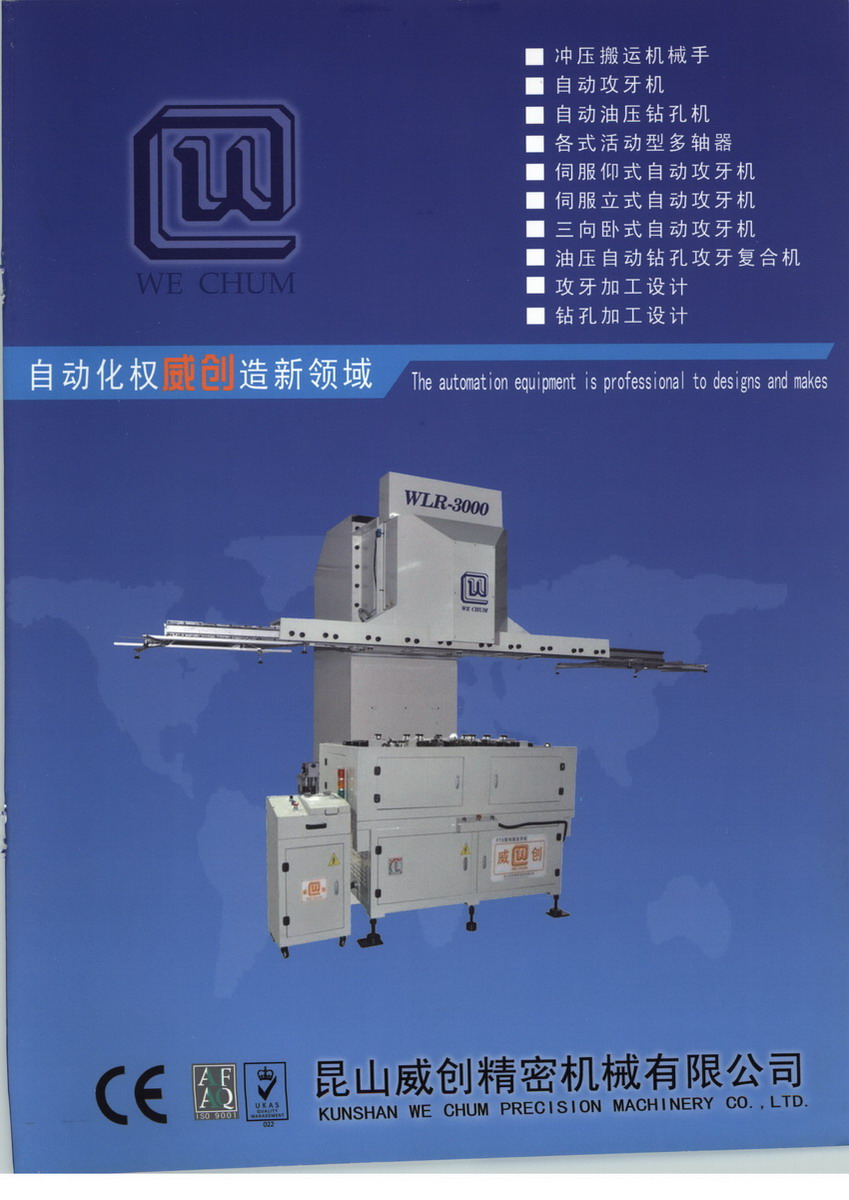 昆山威創(chuàng)自動化科技有限公司位于昆山市周市鎮(zhèn)萬安路383-1號,2004年建廠投產(chǎn),是一家集工業(yè)自動化機器人的研發(fā)、生產(chǎn)、銷售與系統(tǒng)集成等技術(shù)服務(wù)于一體的自動化企業(yè).公司擁有眾多具有豐富經(jīng)驗的從事機器人應(yīng)用工程設(shè)計、自動化設(shè)備、制造及裝配、調(diào)試技術(shù)的人員, 在自動化領(lǐng)域具備充足的技術(shù)研發(fā)能力和豐富的項目經(jīng)驗,為各行各業(yè)廠家量身訂做最適合、最先進的自動化生產(chǎn)系統(tǒng)和解決方案。有效的為各企業(yè)解決日以嚴峻的人工高成本、招工困難、企業(yè)入不敷出等問題。為各行企業(yè)節(jié)約資源、提高效益,創(chuàng)造客戶供應(yīng)鏈和諧共贏。本公司更是以全新的姿態(tài)朝高新技術(shù)產(chǎn)業(yè)發(fā)展,現(xiàn)已發(fā)展成為集設(shè)計,生產(chǎn),制造,銷售和技術(shù)服務(wù)為一體的專業(yè)工業(yè)自動化生產(chǎn)商.并且是富士康,美大,美的,長虹,海信,海爾,三一等國內(nèi)知名企業(yè)長期的合作伙伴,并有著良好的合作關(guān)系.昆山威創(chuàng)崇尚"創(chuàng)造" "奉獻" "結(jié)緣"的原則, 本著客戶是恩人,外協(xié)是貴人,員工是家人的經(jīng)營理念. 期待員工生活更美好、讓客戶工作更便捷,使公司經(jīng)營更達永續(xù)傳承.隨著經(jīng)濟全球化, 人口老齡化、勞動力成本的上升, 未來“機器人換人項目”將就從國家戰(zhàn)略發(fā)展到各級政府和企業(yè)的政策導(dǎo)向和轉(zhuǎn)型動力。昆山威創(chuàng)致力于為客戶提供完善的自動化解決方案和交鑰匙工程,為用戶提供強有力的技術(shù)支撐,努力打造成為行業(yè)領(lǐng)先的高新科技企業(yè),為中國工業(yè)的自動化和信息化作出更多貢獻。