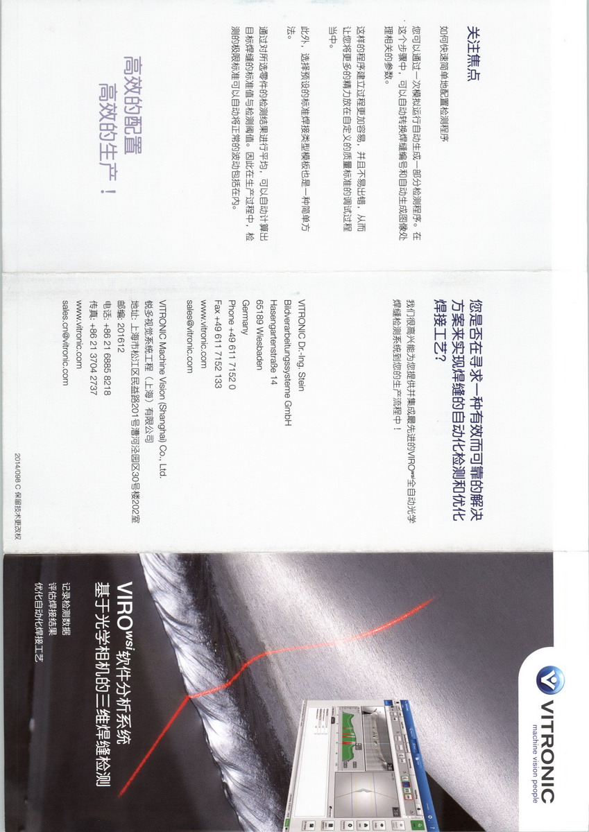 vitronic公司作為行業(yè)領(lǐng)先企業(yè),能夠為各個相關(guān)生產(chǎn)工藝步驟提供安全可靠、功能強大的機器視覺解決方案。vitronic 公司作為一家獨一無二的機器視覺系統(tǒng)的制造商充分證明了:光伏生產(chǎn)完全可以不依賴人工目檢,憑借耐用且實用性高的系統(tǒng)可以實現(xiàn)高識別率和分類安全性。vitronic機器視覺系統(tǒng)是應(yīng)用廣泛的工業(yè)應(yīng)用進(jìn)行精確的或復(fù)雜的檢測任務(wù)。我們的自動化解決方案可確保焊接的最高質(zhì)量標(biāo)準(zhǔn)和釬縫和使用,例如,在汽車和航空航天工業(yè)。我們還提供靈活的表面質(zhì)量檢查金屬工件和無盡的材料。vitronic是業(yè)主管理包括vitronic公司在威斯巴登和一些國際公司與公司集團總部。集團在工業(yè)機器視覺覆蓋范圍廣泛的標(biāo)準(zhǔn)產(chǎn)品和客戶特定的升級模塊單獨定制的解決方案,其核心行業(yè)的世界領(lǐng)導(dǎo)者,物流和交通技術(shù)。自從vitronic成立于1984具有自身的資源實力增長。今天我們?yōu)榇淼?00名員工在四大洲。2013,本集團產(chǎn)生vitronic 83000000歐元總收入。vitronic產(chǎn)品先進(jìn)、保證為客戶提供最大的利益。集團投資超過總收入每年在研究和開發(fā)百分之10。vitronic解都由我們自己設(shè)計和開發(fā)的,在德國生產(chǎn)的。工業(yè)和物流作為最大的工藝穩(wěn)定性和過程的安全性是高性能電池的生產(chǎn)變得越來越重要,光學(xué)質(zhì)量檢測系統(tǒng)要求檢查任務(wù)vitronic接管??焖俑叻直媛实南鄼C,優(yōu)化光照和用戶友好的軟件工具,適合這些系統(tǒng)自動記錄明顯變化過程質(zhì)量。他們可靠地識別和分類的缺陷區(qū)和不降低生產(chǎn)速度或吞吐量。vitronic光學(xué)檢測系統(tǒng)進(jìn)行內(nèi)部檢查以確保沿著生產(chǎn)鏈的質(zhì)量。在涂料,包裝和裝配,保證電池質(zhì)量表面和邊緣檢測、外形和尺寸測量、焊縫三維檢查并確定組件的位置進(jìn)行精確的挑選和地方(機器人視覺)。vitronic光學(xué)質(zhì)量檢測系統(tǒng)可以適應(yīng)汽車和電池制造商對生產(chǎn)環(huán)境的特殊要求。