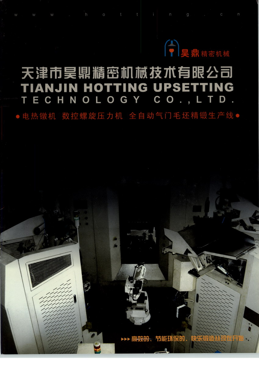 天津市昊鼎精密機械技術有限公司(HOTTING),座落在天津市新技術產業(yè)園區(qū),其基礎依賴于其全體員工不斷創(chuàng)新求實的思想和嚴謹?shù)目茖W態(tài)度.HOTTING公司與天津大學、河北工業(yè)大學及眾多技術研究機構組成合作小組,迅速將客戶的需要和要求轉化成專門設計的設備??蛻舻男枰粮邿o上。 HOTTING公司在機械設計與制造和液壓、氣動及電氣自動化控制方面具有較強的實力,并憑借豐富的實踐經驗,先后為天津豐田發(fā)動機廠、天津星光橡塑廠(豐田合成)、德國SEW減速機廠等公司,完成關鍵設備的制造及原有設備的技術改造等。 HOTTING公司生產的電鐓機是金屬熱成型的理想設備。昊鼎公司遵循“滿足客戶,度身制造”的信念,為您提供恰到好處的設備。我們熱切希望并歡迎您到天津來我公司光臨指導!