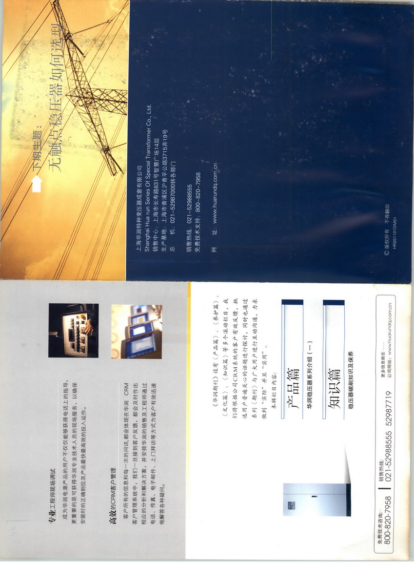 上海華潤電氣是一家集研發(fā)、銷售穩(wěn)壓電源、變壓器為一體的專業(yè)型生產(chǎn)廠商, 也是國內(nèi)知名的OEM制造商。華潤始終把自己定位在一個“卓越的電力能源管理者”的位置上全心全意地投入, 只是為了生產(chǎn)出更好的產(chǎn)品, 讓它為您駕馭電力,有效地保護您的設備。 在二十余載的創(chuàng)業(yè)歲月里, 華潤以前瞻的技術觀念, 強大的設備功能生產(chǎn)出大量適應市場需求的高技術產(chǎn)品, 并應用于現(xiàn)代裝備制造業(yè)、通信移動營運商、電廠及大型醫(yī)療設備等領域。華潤在和這些領域優(yōu)秀企業(yè)的合作中獲得了長足進步, 企業(yè)日新月異, 實現(xiàn)高速、有效的共同發(fā)展。 從單一的訂單式制造, 到為客戶提供個性化系統(tǒng)解決方案, 華潤的核心競爭力已不單單是產(chǎn)品或技術本身的優(yōu)勢, 更是致力于“服務鑄造競爭力”這一企業(yè)核心理念的實現(xiàn)。 今后的華潤仍會堅持以質(zhì)量為本、服務、信譽第一的理念,永遠致力于新產(chǎn)品、新技術、新工藝的不斷創(chuàng)新和開拓!主營范圍:制造,銷售穩(wěn)壓器、穩(wěn)壓電源、機床專用穩(wěn)壓器,醫(yī)療專用穩(wěn)壓器,節(jié)能路燈穩(wěn)壓器,數(shù)控穩(wěn)壓器,微機控制穩(wěn)壓器,低壓干式變壓器、UPS旁路柜、饋線柜等電氣產(chǎn)品