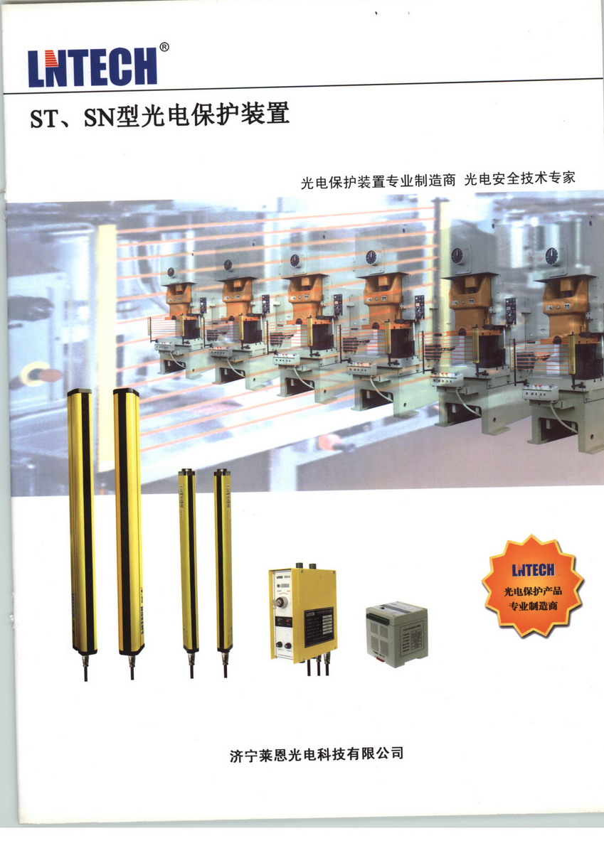 萊恩光電科技有限公司(華南)營銷中心是高起點、高標(biāo)準(zhǔn)的科技型企業(yè),主要從事光電安全產(chǎn)品的研發(fā)、制造和銷售,為機械加工、機械制造企業(yè)提供安全保護產(chǎn)品和安全技術(shù)解決方案。專業(yè)的技術(shù),先進的設(shè)備,成熟的工藝、完善的質(zhì)量保證體系和豐富的安全保護從業(yè)經(jīng)驗,是我們?yōu)槟峁﹥?yōu)質(zhì)產(chǎn)品和服務(wù)的保證。在現(xiàn)代化工廠里,人與機器協(xié)同工作,在一些具有潛在危險的機械設(shè)備上,如沖壓機械、剪切設(shè)備、金屬切削設(shè)備、自動化裝配線、自動化焊接線、機械傳送搬運設(shè)備、危險區(qū)域,易造成作業(yè)人員的人身傷害。光電保護裝置,又稱為安全光幕、安全光柵、光電保護器,沖床安全保護器,壓力機安全保護裝置,機床安全保護器,是通過發(fā)射紅外線,產(chǎn)生保護光柵,當(dāng)光柵被遮擋時,裝置發(fā)出遮光信號,控制具有潛在危險的機械設(shè)備停止工作,以降低作業(yè)人員在工作環(huán)境中受到傷害的可能性,有效保護作業(yè)人員的人身安全。 萊恩光電科技公司生產(chǎn)的光電保護裝置分為兩種類型五大系列:ST型光電保護裝置,又分為STF系列、STD系列、STQ系列 SN型光電保護裝置,又分為SNA系列、SNB系列,主要用于小型沖壓設(shè)備、剪切設(shè)備、機械加工設(shè)備、注塑機械、切紙機械、木工加工機械、立體車庫、以及其它危險區(qū)域的防護。SN系列、ST系列光電保護裝置均具有以下特點: 1. 具有完善的自檢功能--當(dāng)光電保護裝置失電或自身出現(xiàn)故障時,確保不向所控制的電器發(fā)出錯誤信號 2. 抗干擾能力強--對電磁信號、頻閃燈光、焊接弧光及周圍光源具有良好的抗干擾能力。3. 使用壽命長--繼電器有效輸出次數(shù)大于100萬次,繼電器達(dá)到使用壽命后,可更換。4. 具有良好的抗震性能--元器件焊接采用SMD技術(shù),并有多項抗震措施。5. 可根據(jù)用戶要求設(shè)置自保功能--當(dāng)光幕被遮擋時,壓力機滑塊停止運行,再次接通光線,壓力機不能 運行,必須按動復(fù)位按鈕后,壓力機滑塊才能再次啟動。6. 規(guī)格品種多,最大限度的滿足您的要求。7. 結(jié)構(gòu)簡單,接線方便--信號電纜采用航空插件連接。8. 參照歐洲標(biāo)準(zhǔn)設(shè)計,安全可靠。9. 快速響應(yīng)能力--響應(yīng)時間小于20ms,最大限度的避免了危險。10.雙繼電器安全信號輸出,最大限度的增強了輸出信號的可靠性。11.利用LED顯示工作狀態(tài)和故障狀態(tài),便于使用和故障判斷。12.可提供NPN、PNP輸出,此時用戶應(yīng)保證機械設(shè)備的后續(xù)控制電路安全可靠。 13.需要保護的區(qū)域不在一個平面時(如同時需要垂直保護和水平保護),光電保護裝置可串聯(lián)使用。 14.通用性強,對光容易。