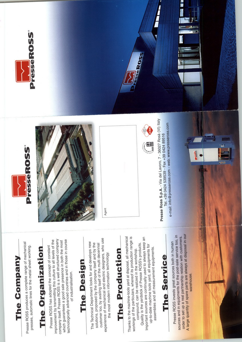 PRESS ROSS produces a complete range of mechanical presses, automatic lines for the metal sheet working.