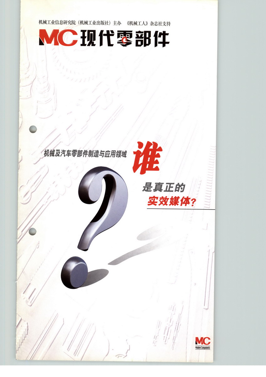 《現(xiàn)代零部件》是一本面向汽車零部件及機(jī)械零部件制造商、經(jīng)銷商、用戶、服務(wù)商,以市場需求為導(dǎo)向,集信息、技術(shù)、產(chǎn)品、市場與管理為一體的綜合性技術(shù)期刊。由機(jī)械工業(yè)信息研究院主辦。深入介紹軸承、齒輪、液壓、氣動(dòng)、密封件、緊固件等機(jī)械零部件及汽車零部件國內(nèi)外先進(jìn)制造技術(shù)、裝備、產(chǎn)品和管理經(jīng)驗(yàn),充分提供機(jī)械零部件及汽車零部件行業(yè)的市場需求和發(fā)展方向預(yù)測(cè)、集成應(yīng)用解決方案、檢測(cè)設(shè)備及保證措施、國內(nèi)外機(jī)械零部件及汽車零部件知名品牌等高效整合信息,是機(jī)械零部件及汽車零部件制造與應(yīng)用企業(yè)決策層不可或缺的高端雜志。以機(jī)械零部件及汽車零部件制造商、經(jīng)銷商、用戶、服務(wù)商中設(shè)計(jì)、制造、管理、營銷、采購與維修等部門中、高級(jí)管理層為主要發(fā)行對(duì)象。