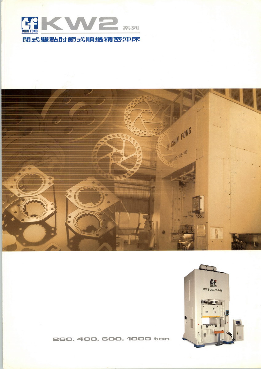 金豐(中國(guó))機(jī)械工業(yè)有限公司生產(chǎn)的鍛壓機(jī)械產(chǎn)品系以母公司的設(shè)計(jì)圖紙、生產(chǎn)工藝和技術(shù)、管理體系為藍(lán)本,與母公司進(jìn)行同步生產(chǎn)壓力機(jī)。自1996年投產(chǎn)以來,通過了出口產(chǎn)品質(zhì)量許可證及ISO-9001:2000版國(guó)際品質(zhì)認(rèn)證。同時(shí)為迎接高性能、高自動(dòng)化時(shí)代的來臨,公司全部采用來自日本、臺(tái)灣之大型、高效、精密之生產(chǎn)設(shè)備,并以此來穩(wěn)定及提升產(chǎn)品品質(zhì),產(chǎn)品涵蓋2400噸級(jí)以下開式、閉式、高速、冷熱鍛各種類型機(jī)械式?jīng)_床,主要客戶有天津豐田汽車、南昌江鈴汽車、章丘海爾、深圳富金、美國(guó)STAMTEC等公司。
