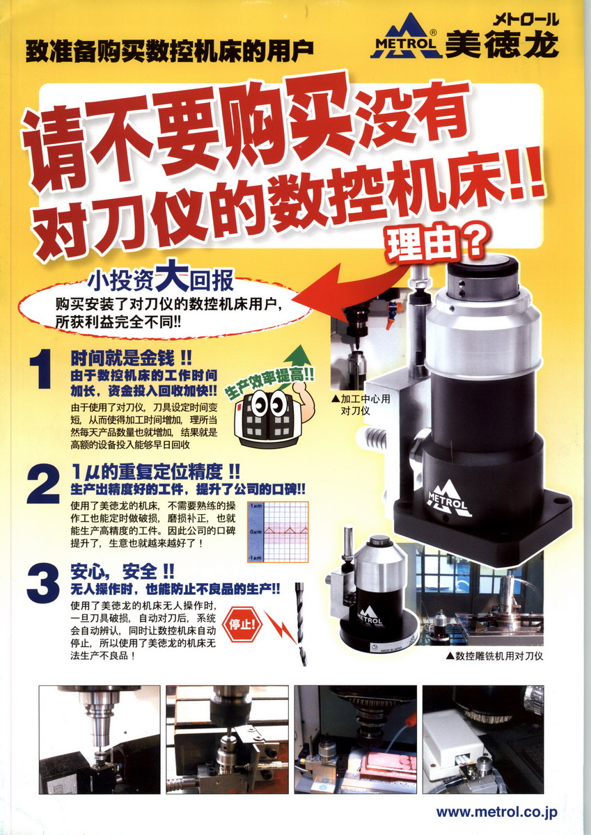 在數(shù)控機床領(lǐng)域,我們在1976年發(fā)明了世界上第一臺用在數(shù)控車床上的數(shù)控機床用對刀儀。1995年,我們的創(chuàng)始人被日本科技省授予科技長官獎,目前,我們的高精密傳感器已經(jīng)被全球60多個廠商實用,因為我們的傳感器能夠成功的為客戶提高成本效率和客戶的生產(chǎn)力。在接觸式傳感器領(lǐng)域,美德龍認識到,相比于傳統(tǒng)傳感器,譬如限位開關(guān),接近傳感器和光電開關(guān),接觸式高精密傳感器更加可靠,精密,緊湊,簡便和更經(jīng)濟。因此美德龍超越了傳統(tǒng)傳感器,開發(fā)了既能位置識別又能空間區(qū)別的接觸式高精密接觸式傳感器, IP67顯示了其超強的防護等級,能夠?qū)谷魏螑毫拥沫h(huán)境,目前,我們正繼續(xù)積極在高精度和實用性兩方面來發(fā)展和擴大美德龍品牌。