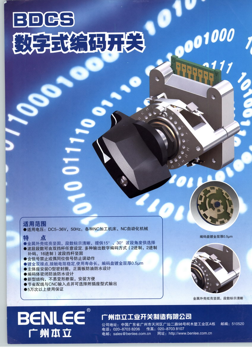 廣州本立工業(yè)開關(guān)制造有限公司創(chuàng)建于2003年,位于中國廣州,是一家集研發(fā)、生產(chǎn)、銷售于一體的專業(yè)性工業(yè)開關(guān)制造企業(yè)。我們的產(chǎn)品廣泛地應(yīng)用于軌道交通、機(jī)械制造、自動(dòng)控制、電梯工業(yè)以及通訊設(shè)備等領(lǐng)域。