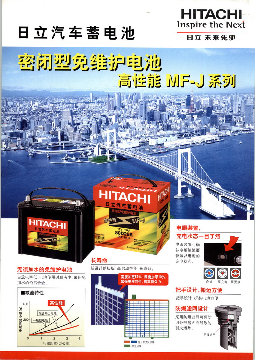 日立蓄電池(東莞)有限公司秉持著提供高品質(zhì)產(chǎn)品的日立精神,為顧客提供高品質(zhì),更安全的汽車電池。日立蓄電池(東莞)有限公司為日本日立集團(tuán)的新神戶電機(jī)株式會社獨(dú)自出資創(chuàng)立的子公司。新神戶電機(jī)株式會社為日本日立華成集團(tuán)子公司,日立集團(tuán)中重要的一份子。 日立蓄電池(東莞)有限公司(以下簡稱HSD)是由日本新神戶電機(jī)株式會社獨(dú)資建成的子公司,公司于2003年5月成立,并于2004年4月開始生產(chǎn)汽車用電池??偣拘律駪綦姍C(jī)株式會社在日本已擁有80年以上的電池生產(chǎn)經(jīng)驗,是生產(chǎn)汽車用、工業(yè)用電池的綜合型廠家。近年來更開發(fā)了汽車專用的鋰離子電池,及領(lǐng)先世界獨(dú)步開發(fā)的自我診斷式智能型電池,技術(shù)處于世界領(lǐng)先水平。日立蓄電池作為日立集團(tuán)的一員,在汽車電子工學(xué)方面,擔(dān)任了全方位提案型的重要角色。公司全面導(dǎo)入日本的先進(jìn)技術(shù),采用比日本更加嚴(yán)格的品質(zhì)管理體系,生產(chǎn)高品質(zhì)、具有高信賴度的產(chǎn)品為中國的電池市場的發(fā)展做出貢獻(xiàn)。