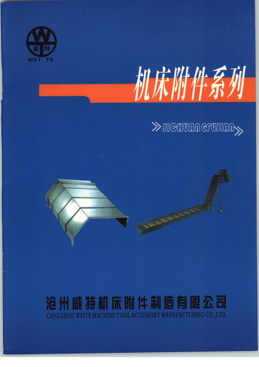 滄州威特專業(yè)生產各種機床防護罩、系列排屑機各種規(guī)格拖鏈,工作燈及其它機床附件。生產的柔性風琴防護罩(盔甲式,低速式,中速式,高速式 )防塵、防鐵屑、防水、防油、防乳劑和化學藥品,運行平穩(wěn)。鋼板(不銹鋼板,冷板)防護罩外形美觀,防鐵屑、防水、防油、耐拉伸、撞擊不變形、使用壽命長。生產的輸送機有螺旋輸送機,刮板輸送機,鏈式輸送機,皮帶輸送機,輥式輸送機,磁性輸送機等,根據(jù)不同的制作材質和不同的使用需要又衍生出多種產品規(guī)格供你選擇。另有:防塵折布;絲桿絲杠防護套;螺旋鋼帶保護套、鋼鋁拖鏈、工程塑料拖鏈、矩形金屬軟管、可調塑料冷卻管、鋁型防護卷簾、蛐紋彈簧吸塵管、導軌刮屑板、減震墊鐵、調整墊鐵、T型撞塊槽板系列等產品。
