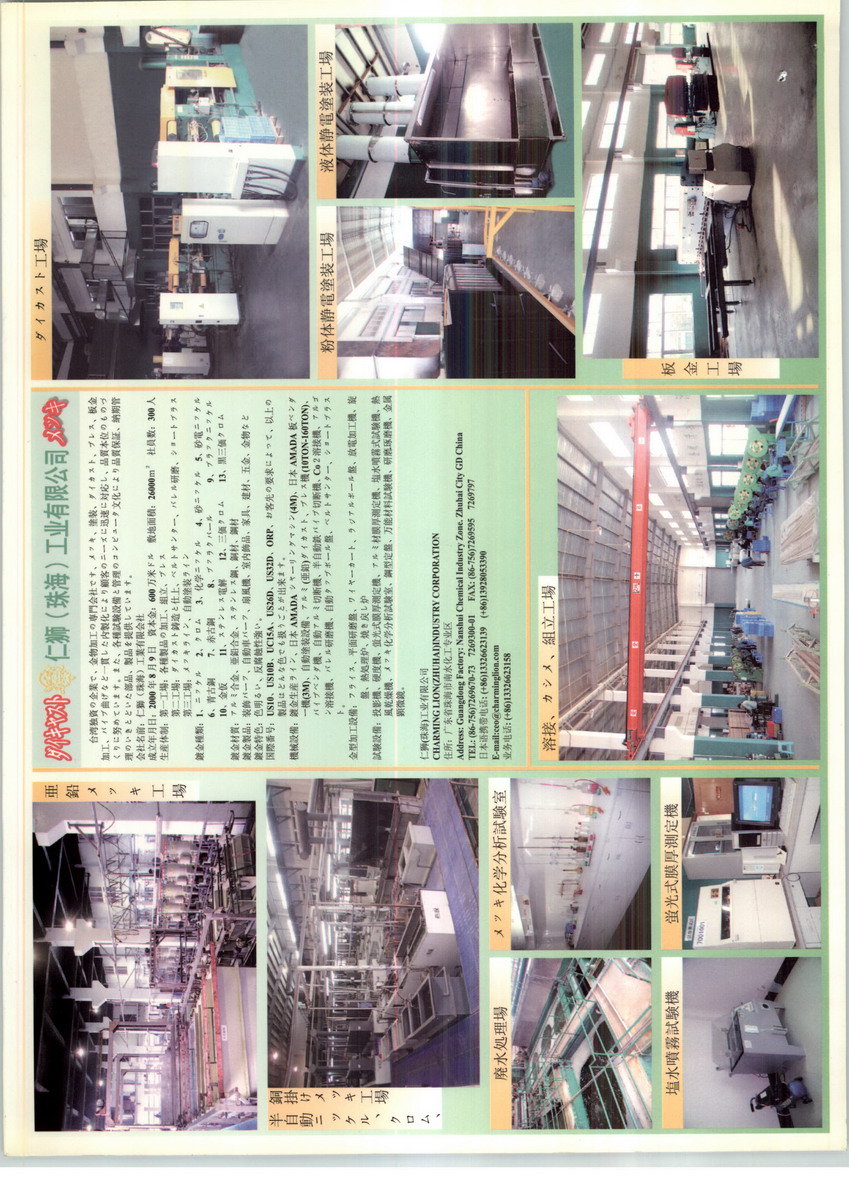 仁獅(珠海)工業(yè)有限公司由臺灣獨資、專業(yè)從事五金加工的企業(yè),公司位于珠海重要的經(jīng)濟開發(fā)區(qū)-臨港工業(yè)區(qū)南水化工專,主要從事電鍍、涂裝、壓鑄、注塑、滾牙、沖壓、鈑金加工、鍛造及彎管等專業(yè)化生產(chǎn)。科學的管理體制、優(yōu)秀的技術隊伍、先進的生產(chǎn)設備及量測儀器,迅速地滿足顧客的要求。公司秉承“開拓、創(chuàng)新、務實、奮進、誠信”的經(jīng)營理念,以“全員參與、堅持標準、持續(xù)改進、滿足客戶需求”為質(zhì)量方針,制造出品質(zhì)保證、交貨準確、信用可靠、服務周到的產(chǎn)品。